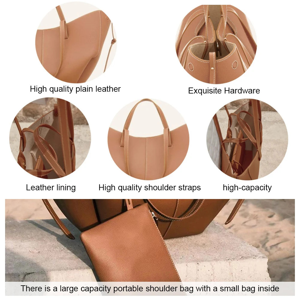 Women Vintage Shoulder Bag Large Capacity Elegant Shoulder Bag PU Leather Leisure Bag with Matching Clutch Set