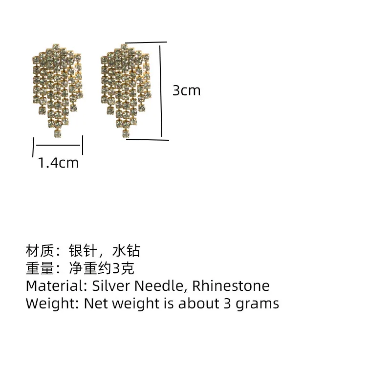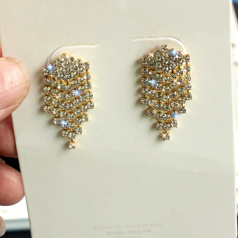 Fashion wild highend full rhinestone tassel ladies super flash zircon earrings short paragraph bridal earrings wholesale