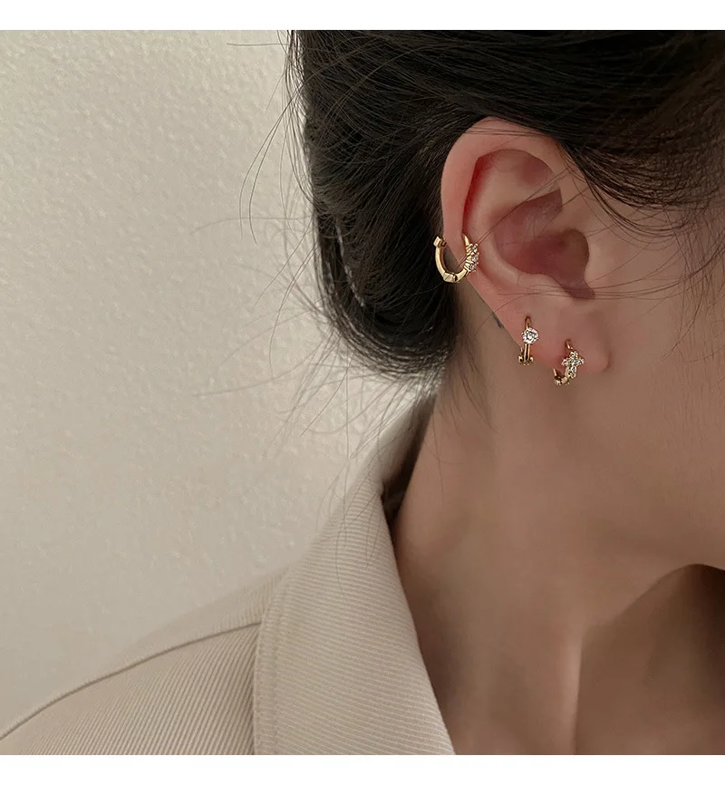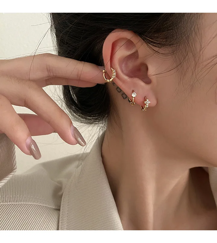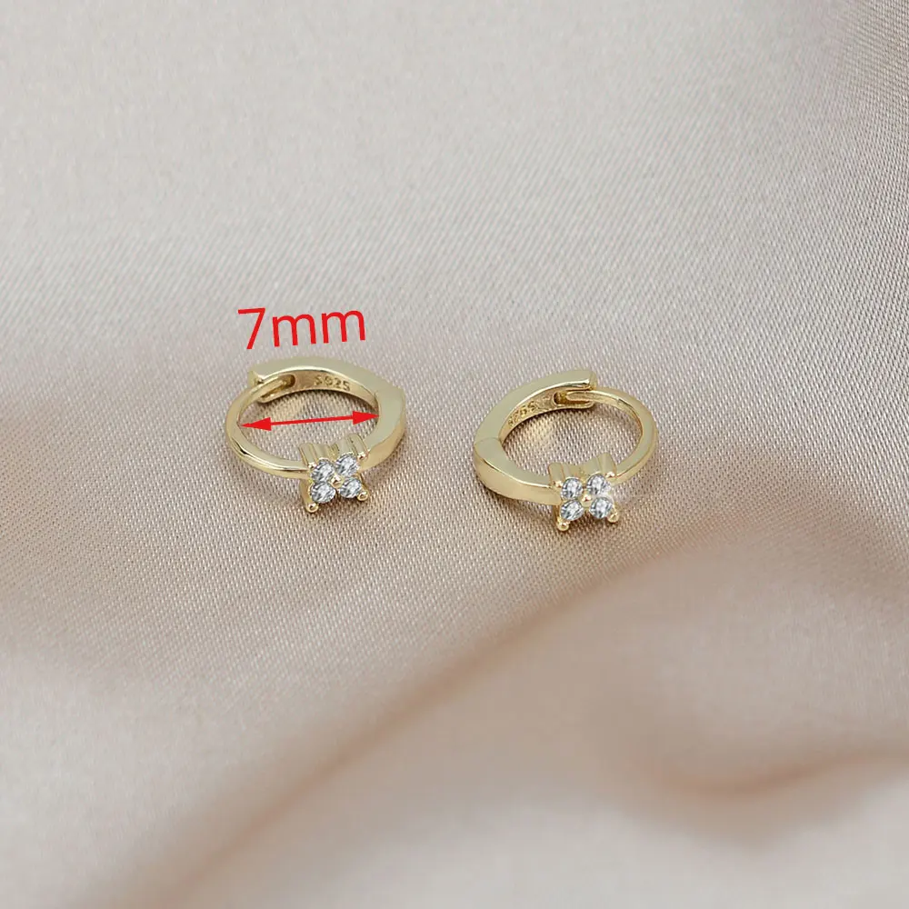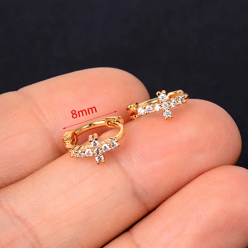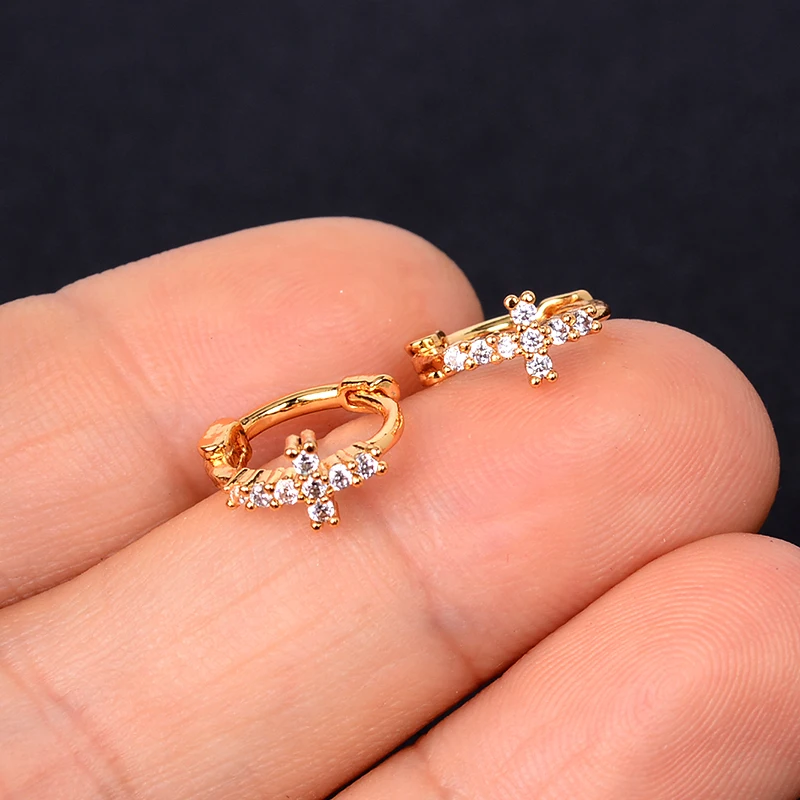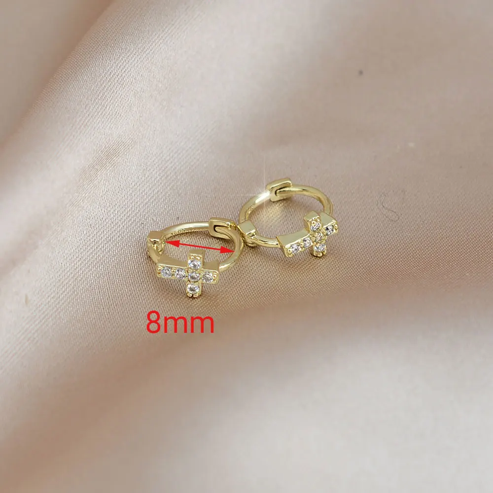 korean Simple Piercing Cross Flower Hoops huggie Earrings Rings Small Geometry Round Rhinestones Gold Color Hoop Earrings Gift