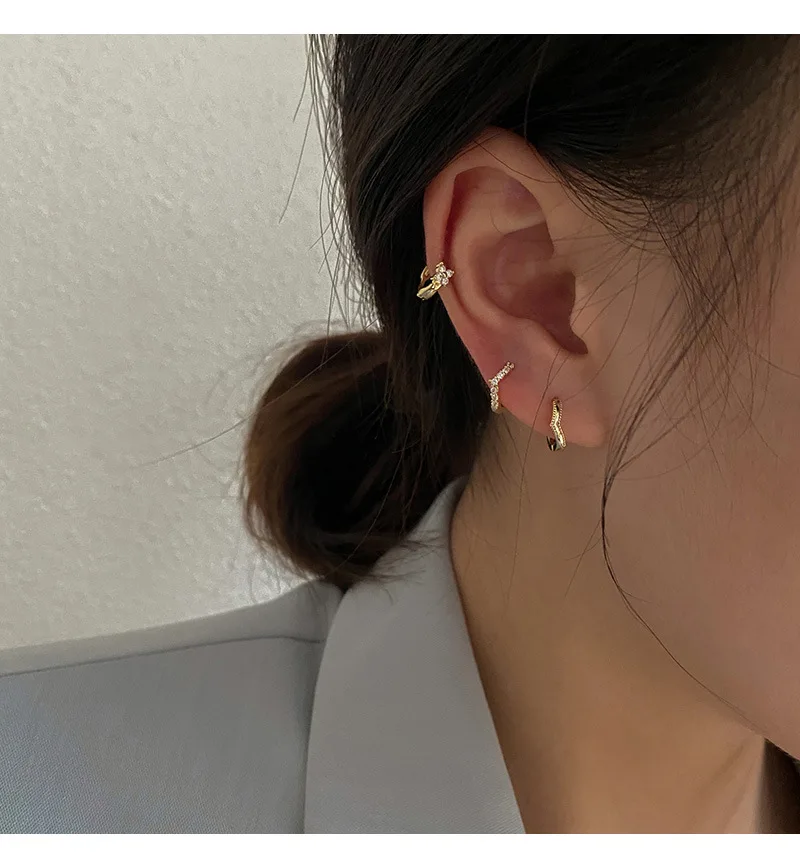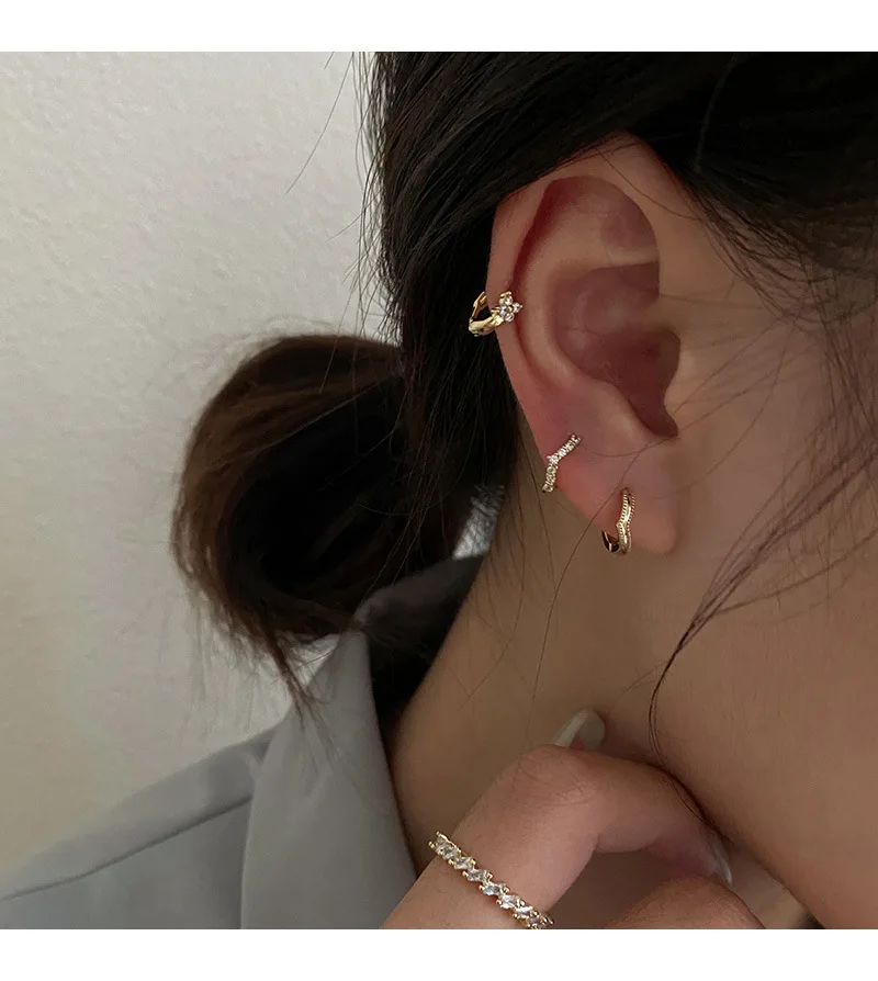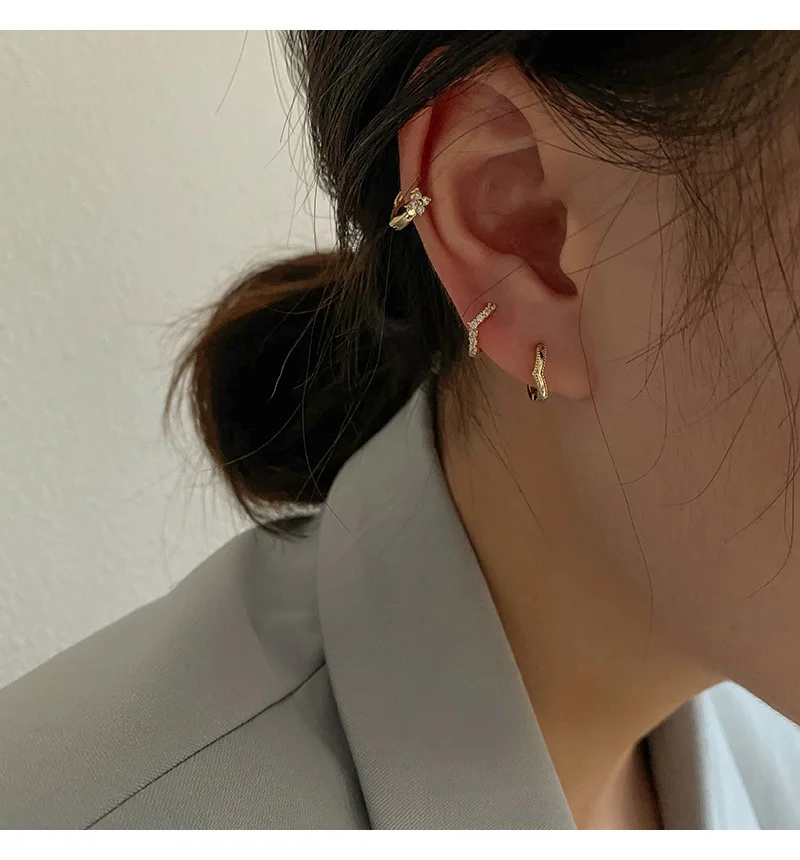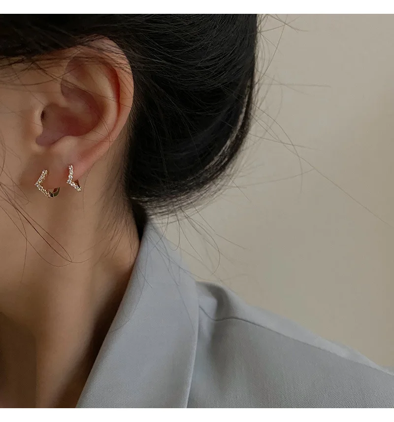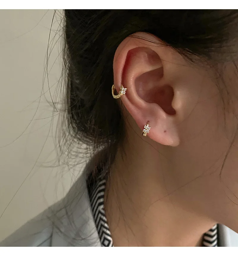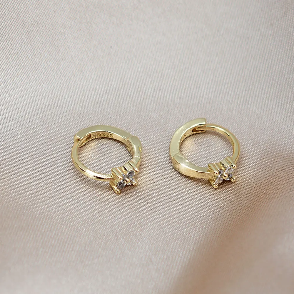 korean Simple Piercing Cross Flower Hoops huggie Earrings Rings Small Geometry Round Rhinestones Gold Color Hoop Earrings Gift
