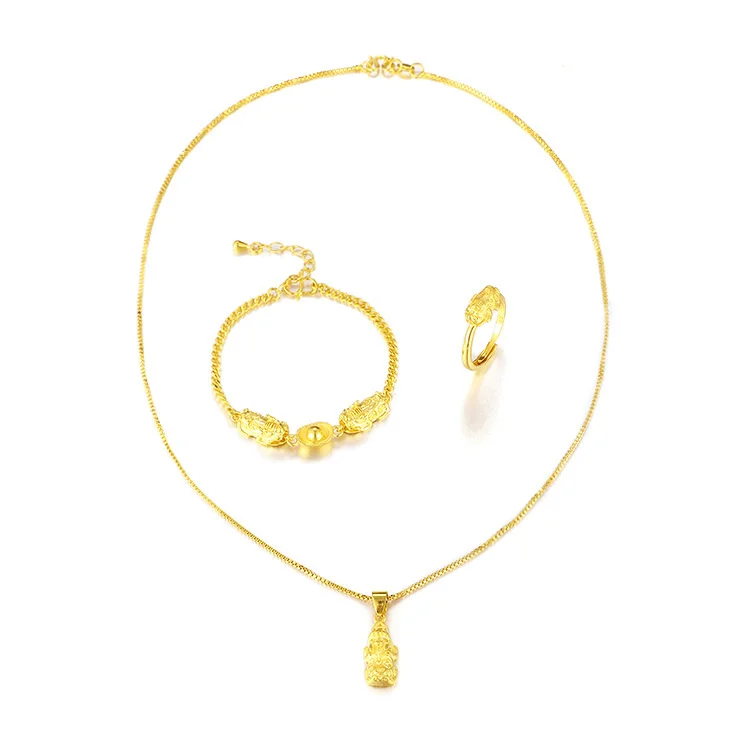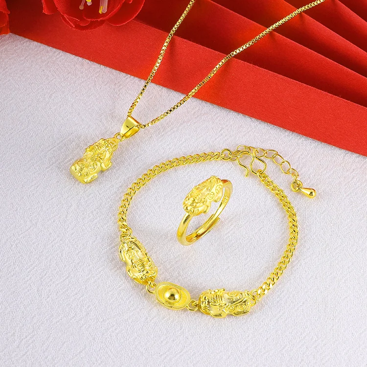 Fashion Vietnam Sand Gold Pixiu Pendant Set Plated 24K Gold Women's Gold ingot Bracelet Ring Jewelry
