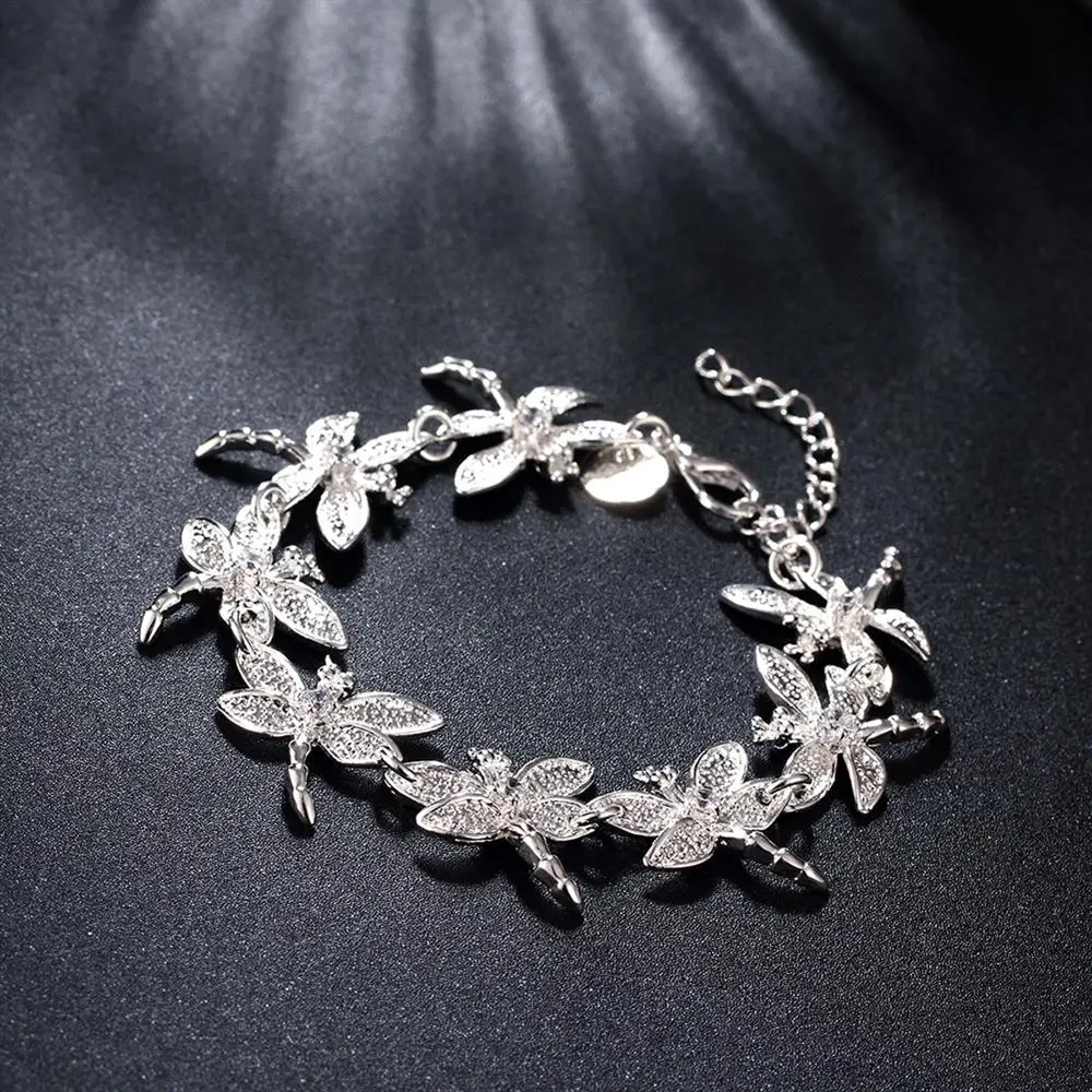 Fashion Party Gifts Charm 925 sterling Silver Crystal dragonfly pendant necklace earring bracelet rings Jewelry set for women