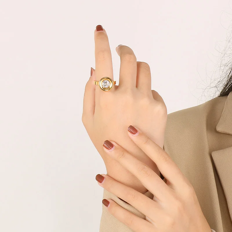 Fashion Women Silver Color Gold Circle Titanium Steel Circle Ring Jewelry Customized For Friend Gift
