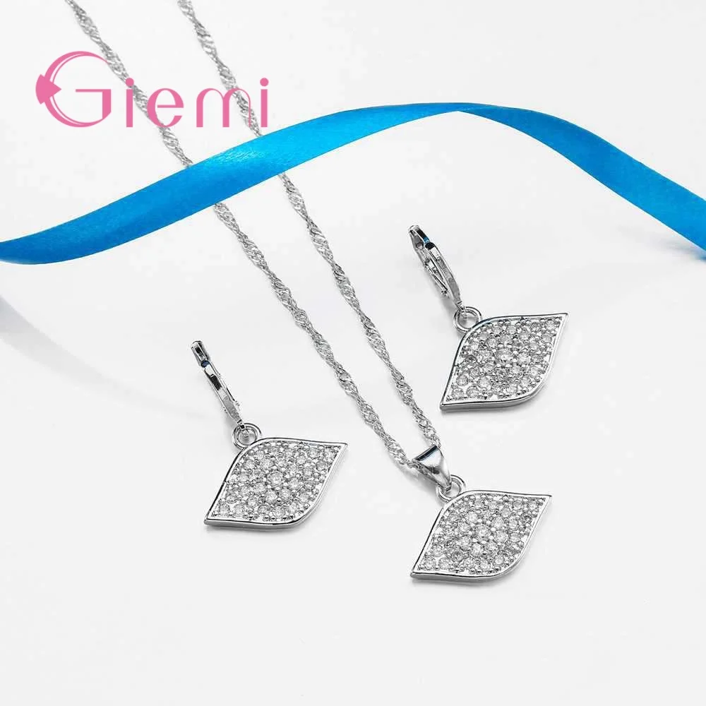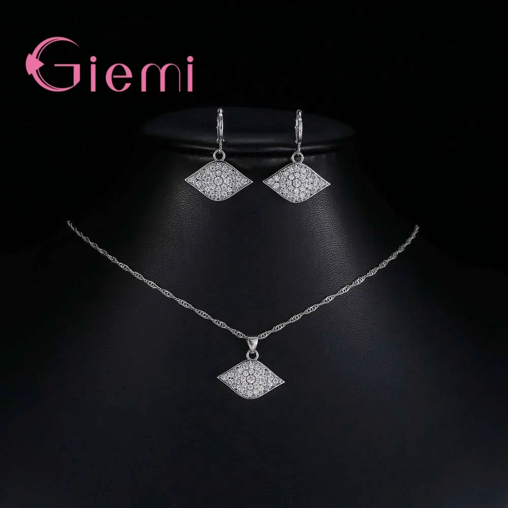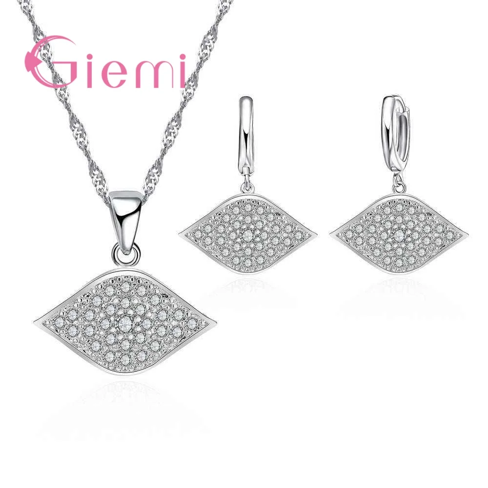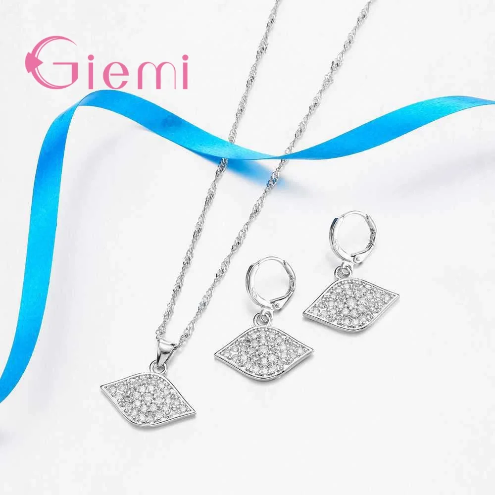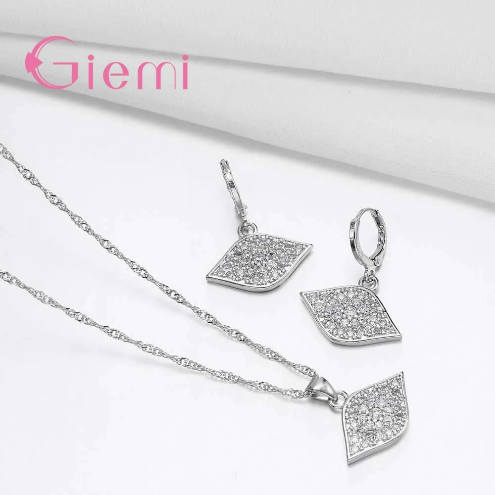Wedding Bridal Sets 925 Sterling Silver Jewelry Set For Women Big Stone CZ Cubic Zirconia Necklace/Earring