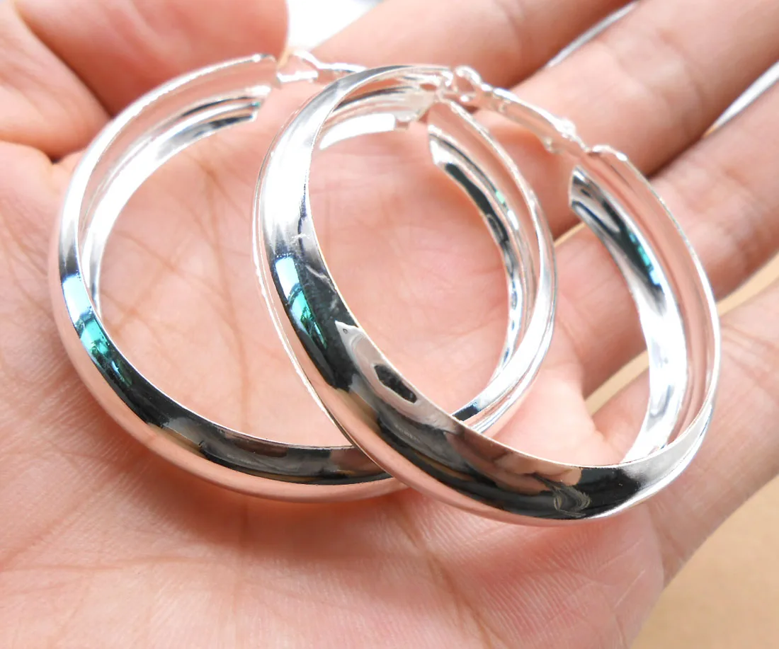 Item Condition:100% brand new Item Material: 925 Silver Plated Item Size: 50MM*12MM Conversion:1cm=0.39 inch Quantity: 1 pair
