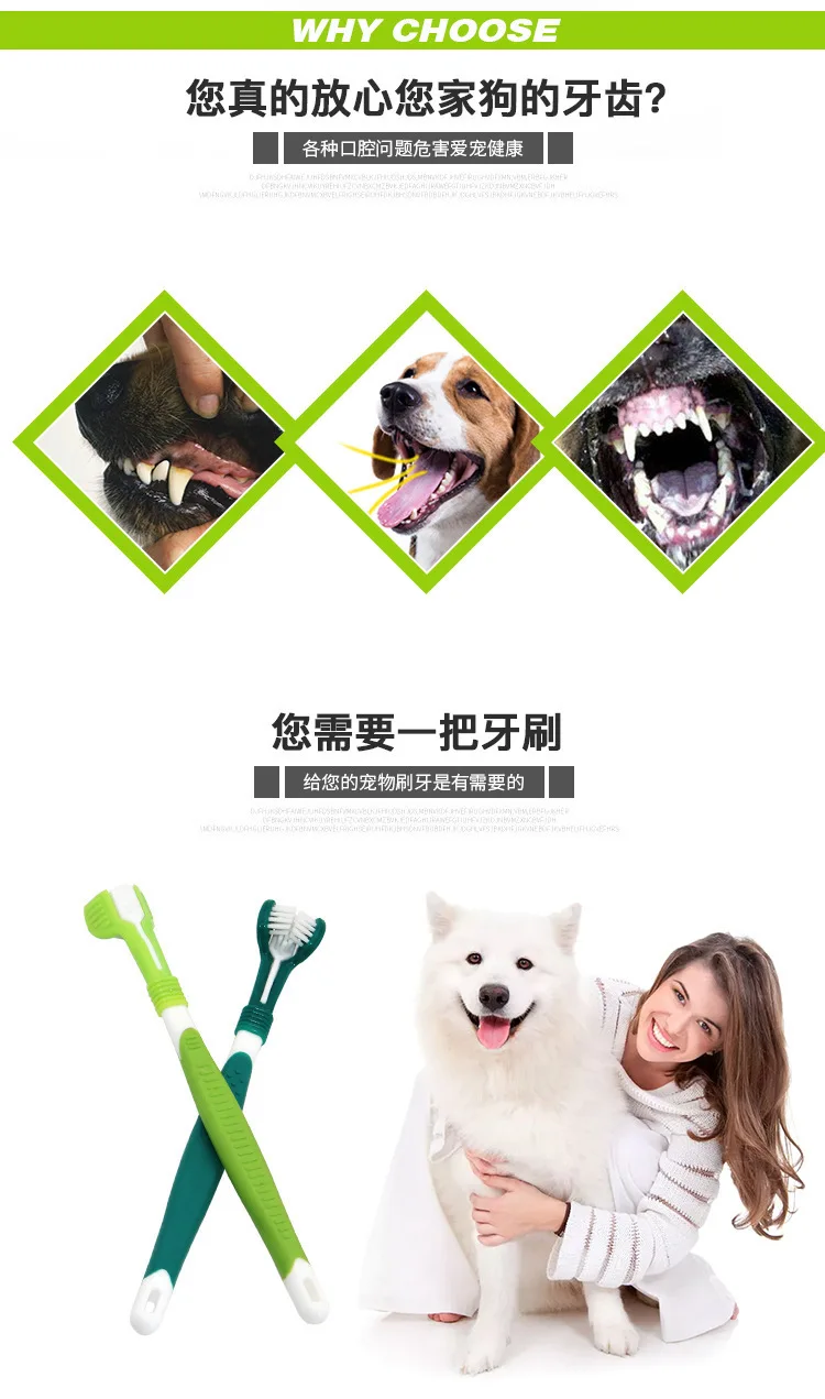 2.As a pet product, the three-head toothbrush can provide you with a multi-angle cleaning of your pet's mouth and teeth.