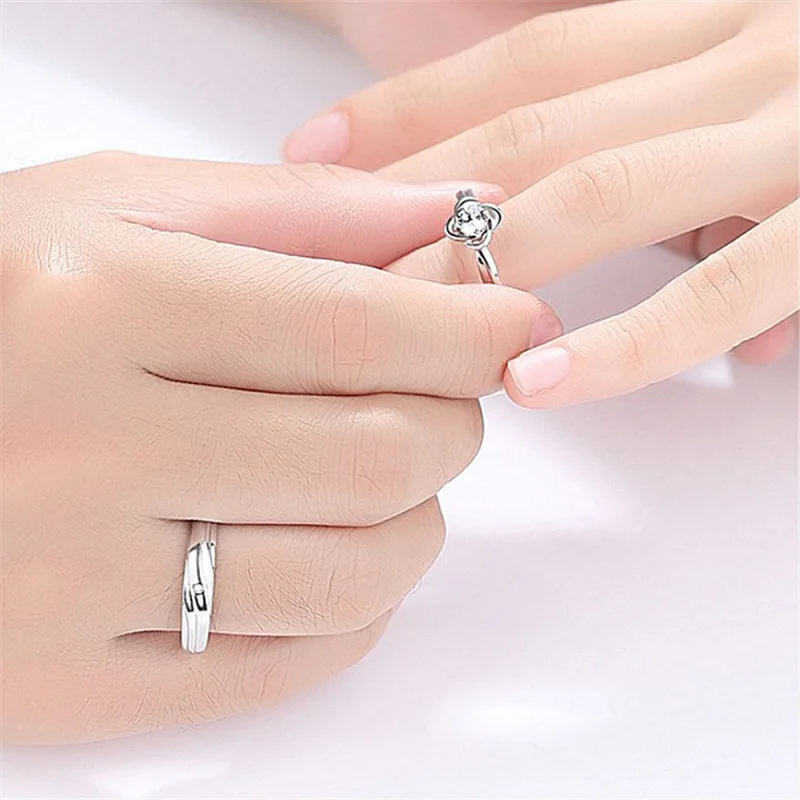 2Pcs/sets Geometric Love Heart Zircon Rings Paired Rings for Couple Promise Matching Wedding Ring Set Senior Designer Jewelry