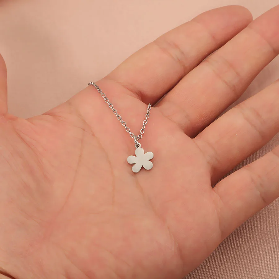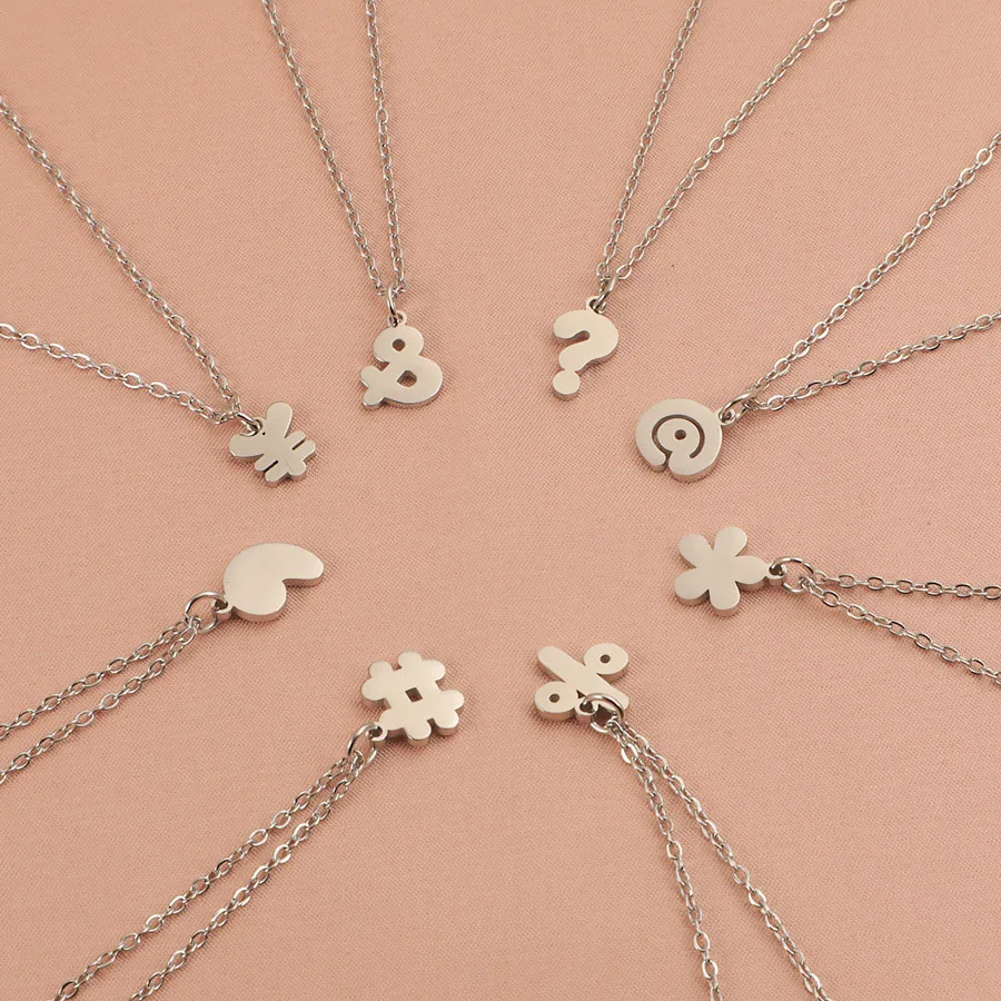 304 Stainless Steel 45cm Chain Question Mark Flower Necklace Jewlery Not Fade Silver Color