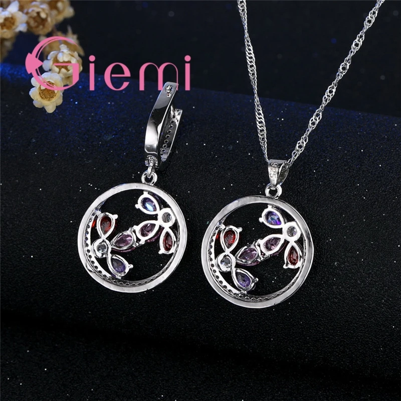 Fashion Engagement Fine Jewelry Sets Hot Hollow Round Shape Luxury 925 Sterling Silver Necklace Earrings for Women Female
