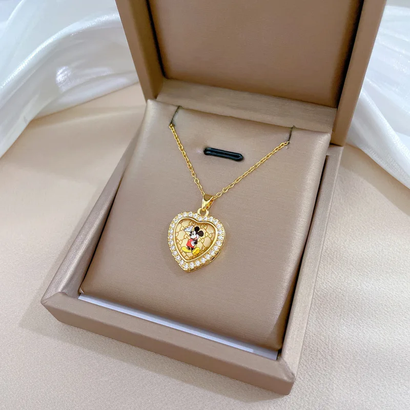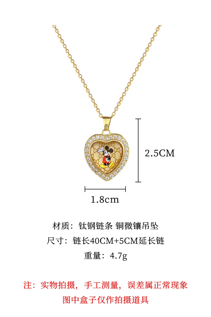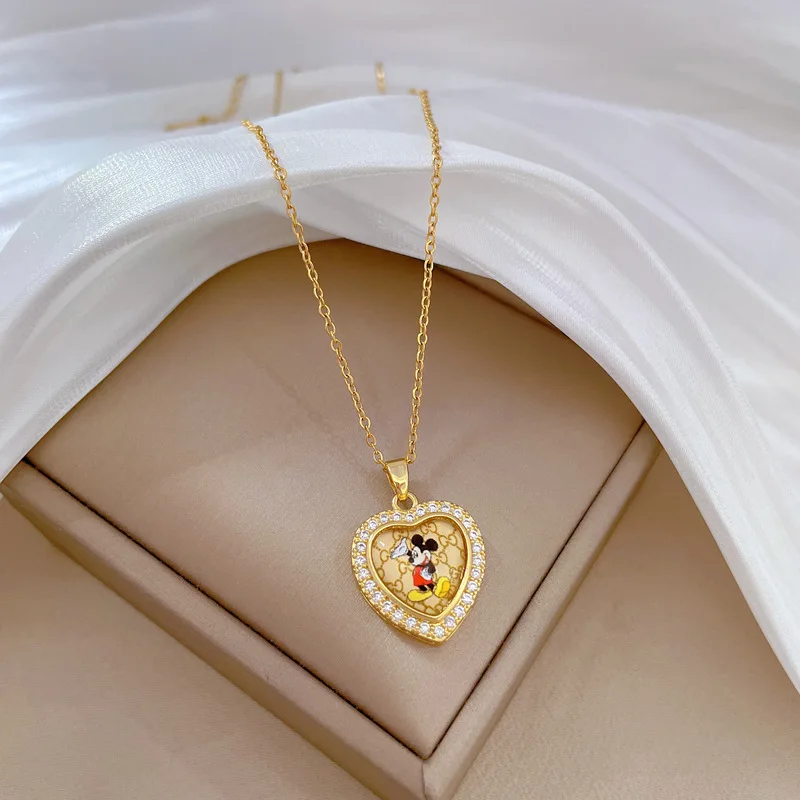 Heart Mickey Cartoon Necklace Crystal Iced out Romantic Women Neck Chain Choker Anime Gifts for Women Girls Jewelry Accessories