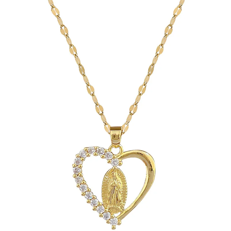 Stainless Steel Crystal Heart Virgin Mary Necklace for Women Amulet Gold Plated Necklace Religious Jewelry Our Lady of Aparecida