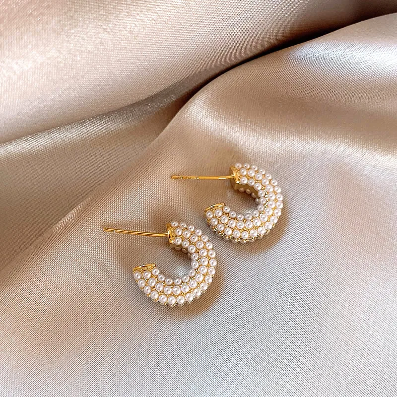 2024 Korea new design fashion jewelry 14K gold plated C-type zircon pearl earrings elegant women's daily work accessories