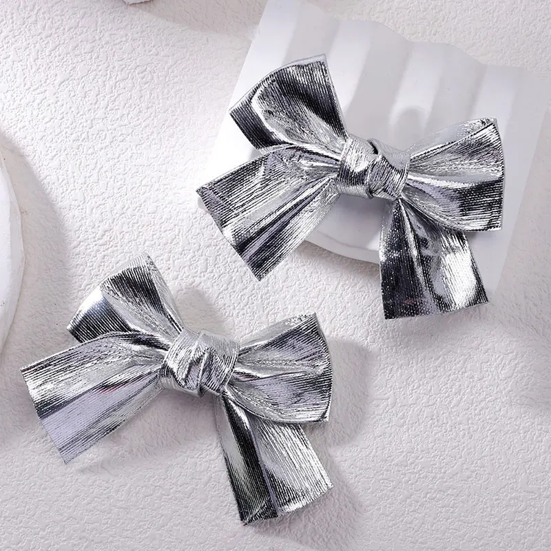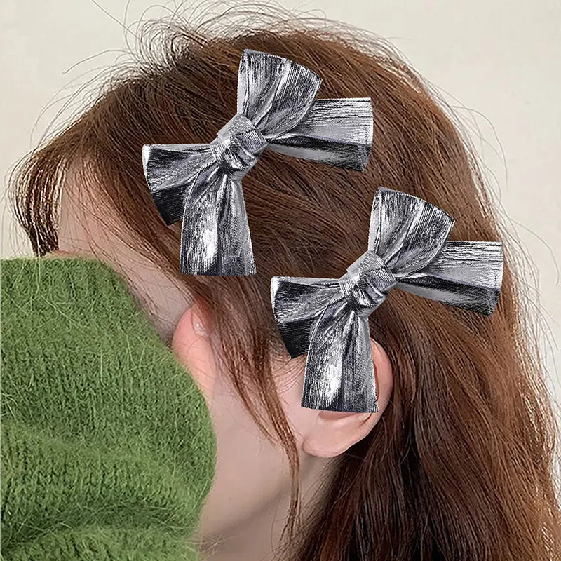 2Pcs Vintage Gold Sparkle Bow Hair Clips For Girls Cute Children Hairpins Handmade Barrettes Headwear Kids Hair Accessories