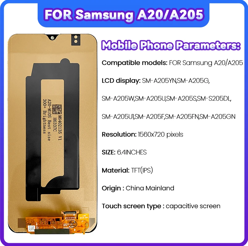 6.4 inch LCD for Samsung Galaxy A20 A205 SM-A205YN SM-A205G Touchscreen Digitiser for Samsung SM-A205F with Frame LCD