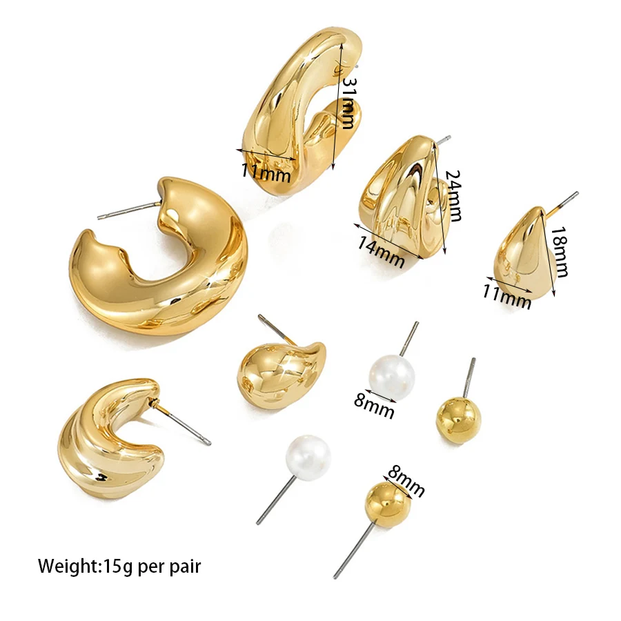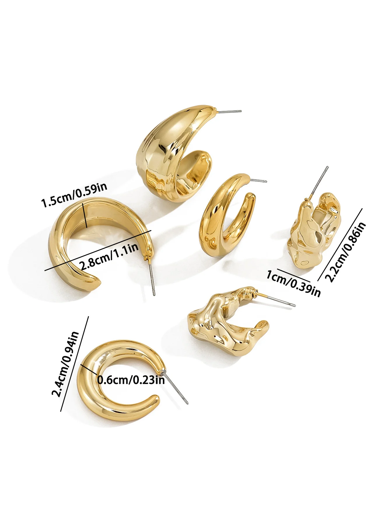 6Pcs Glossy Ccb Gold Plated Geometric Irregular Tear Drop Stud Earrings for Women Trendy Twisted Chunky Hoop Earrings Jewelry