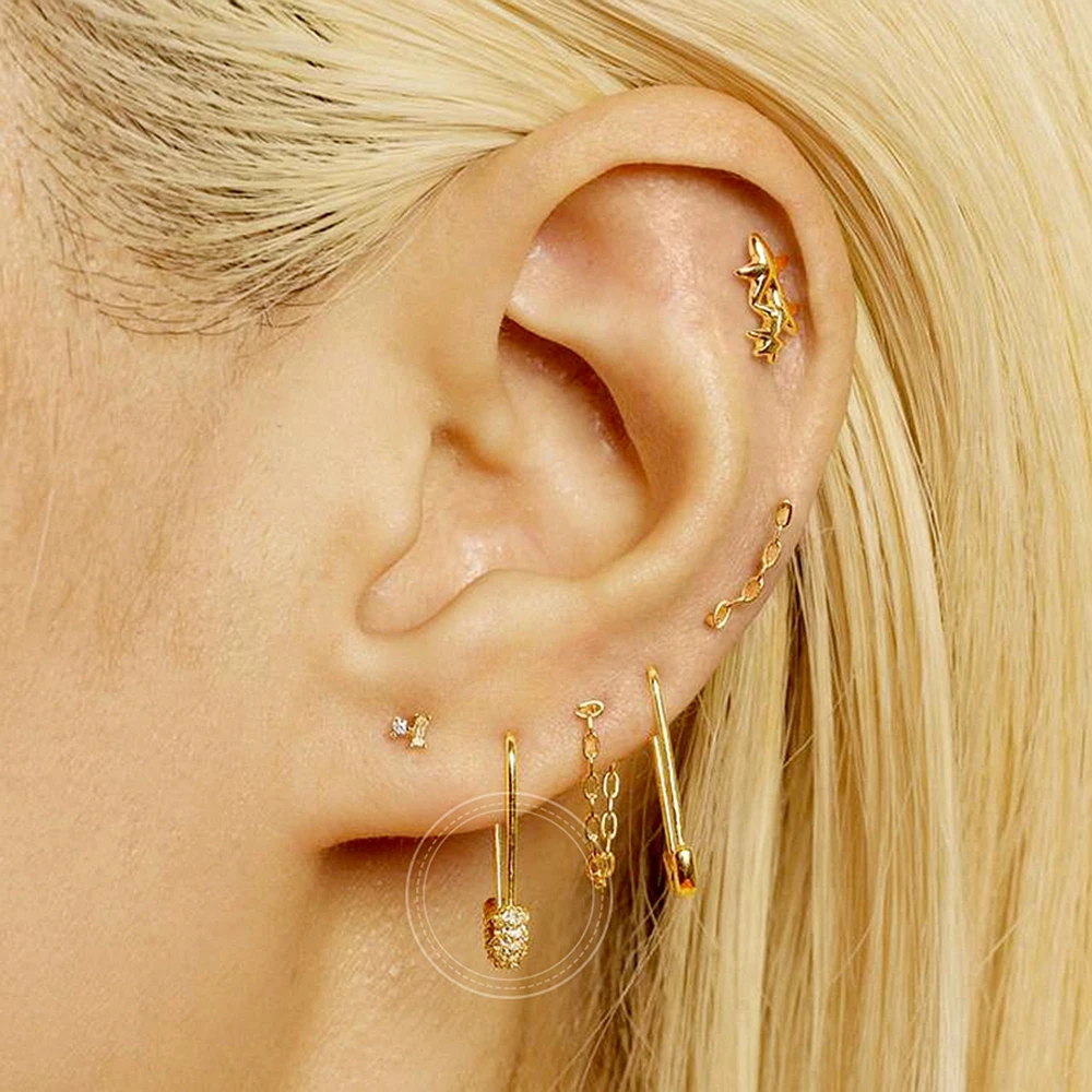 925 Sterling Silver Needle Small Unique Paperclip 4mm Safety Pin Stud Earrings Cute Gold Earrings for Women Luxury Jewelry Gift