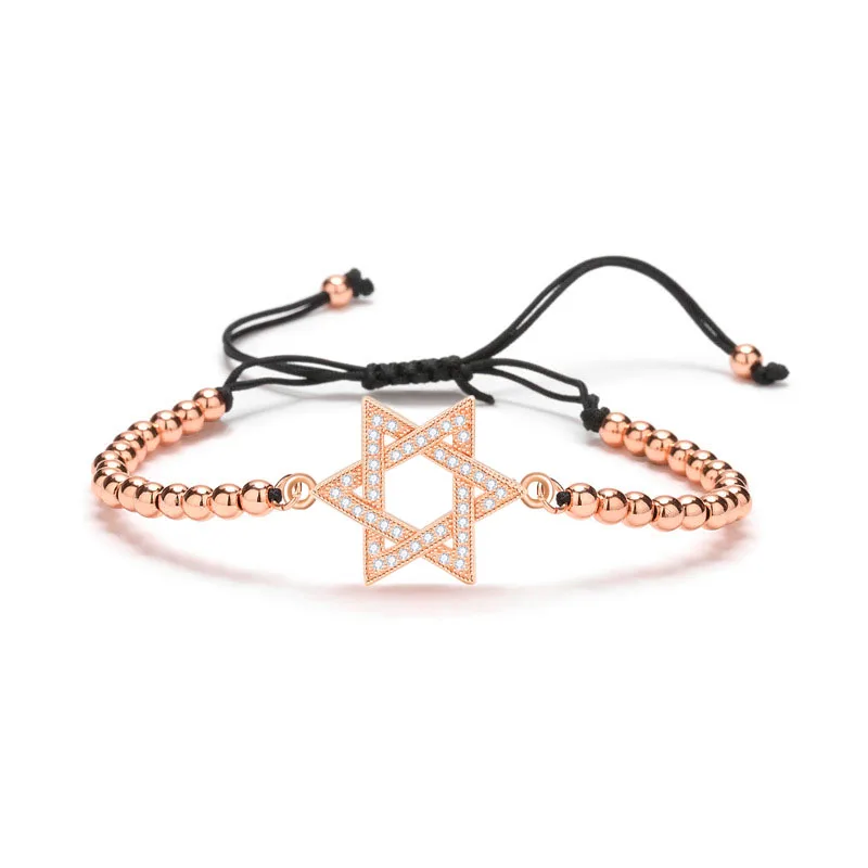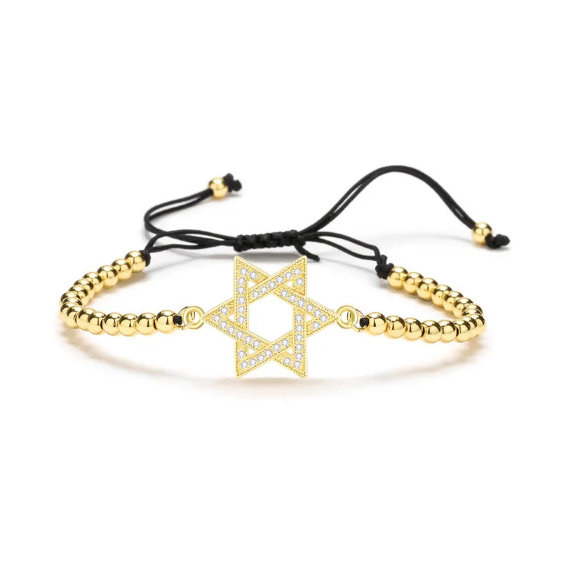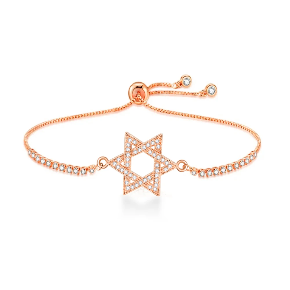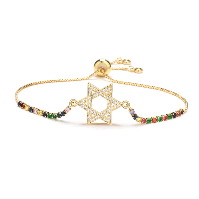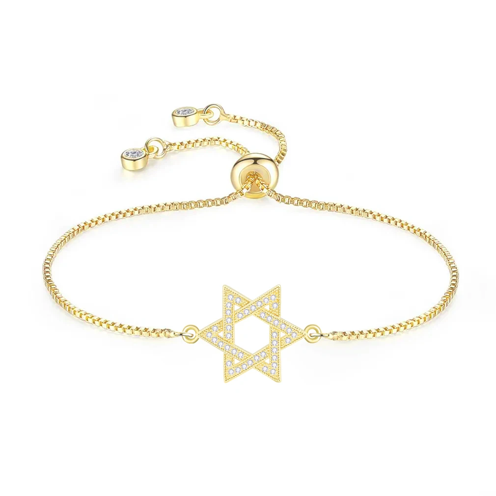 NAME:AAA White Cubic Zirconia Crystal Six-point Jewish Star Of David Charm Bracelet Women CZ Stones Box Chain Adjustable Jewelry Gift