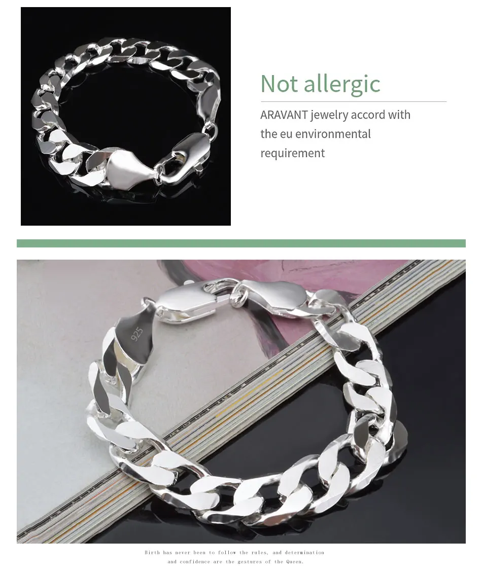 Aravant 925 Silver 12MM Bracelet Chain For Men Women Fashion Jewelry
