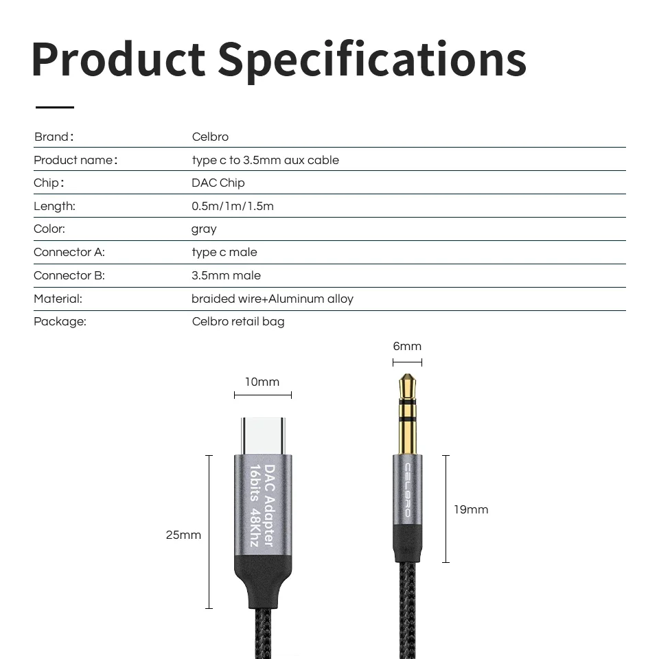 USB C to 3.5mm AUX Cable * 1pc(0.5M/1M/1.5M)