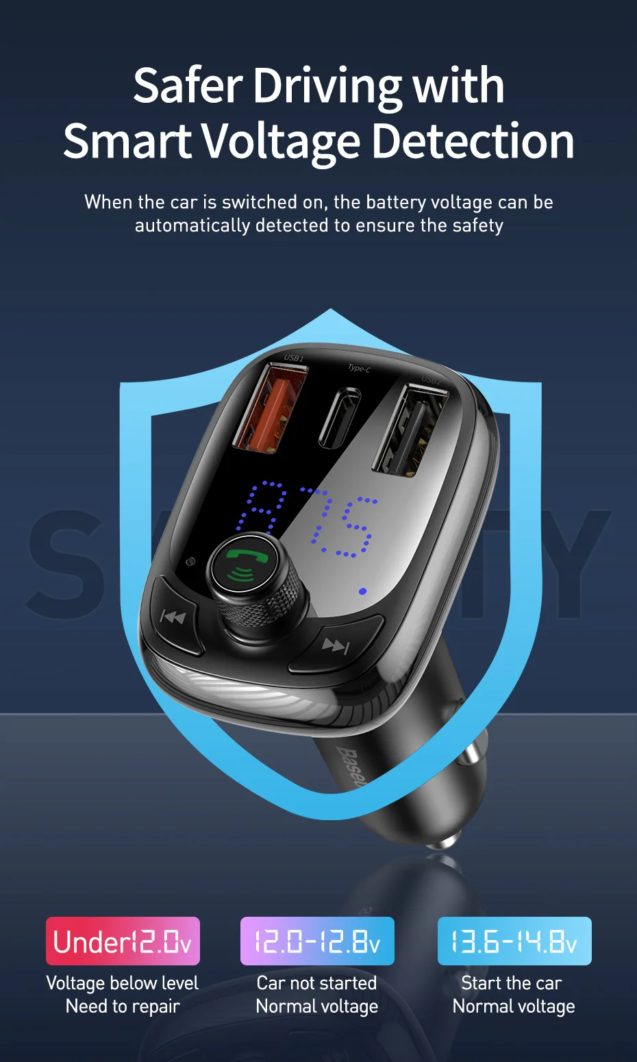 Baseus FM Transmitter Bluetooth 5.0 Handsfree Car MP3 Player & PPS QC3.0 QC4.0 5A Fast Car Auto Charger Kit Audio Car Accessory