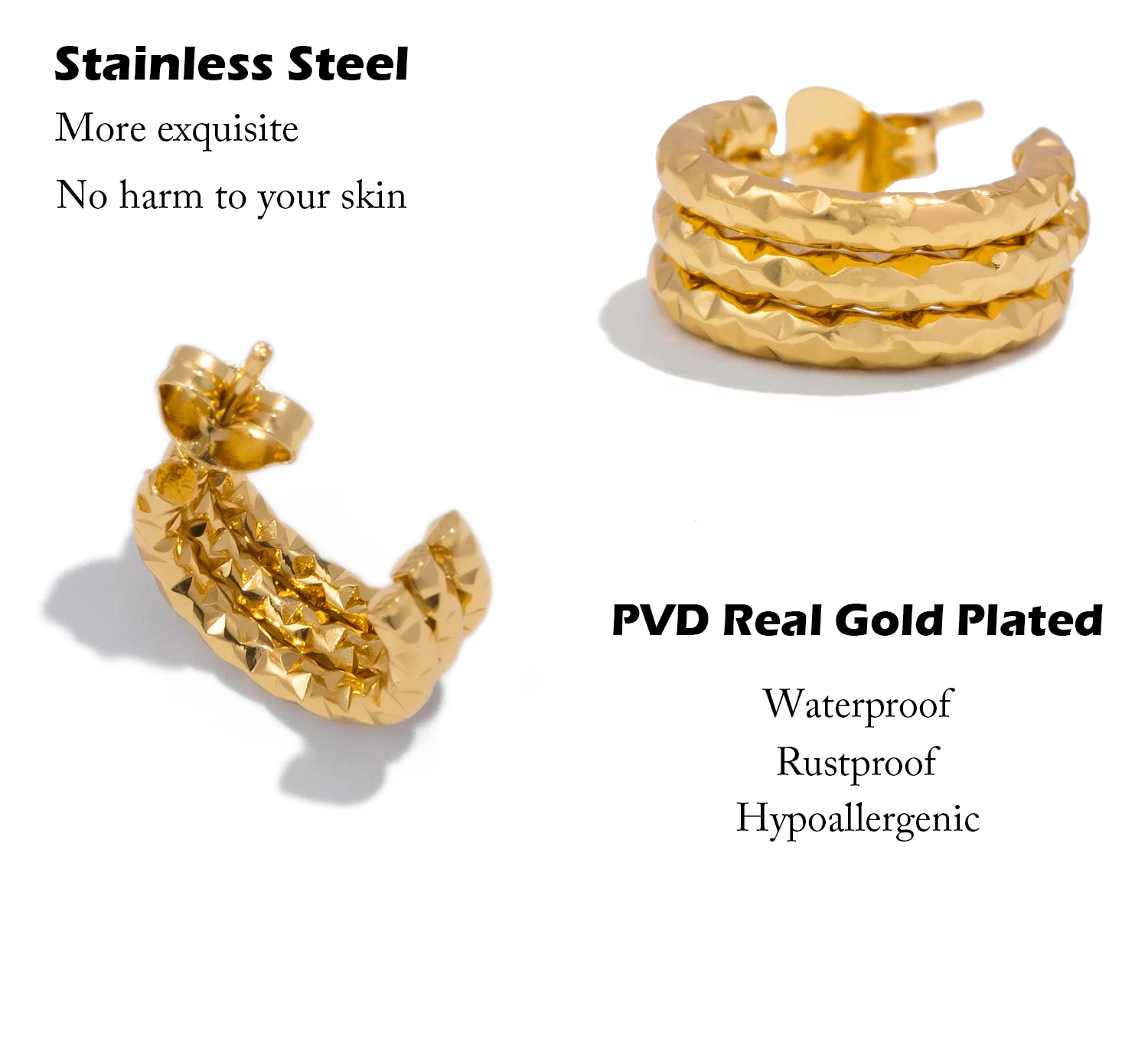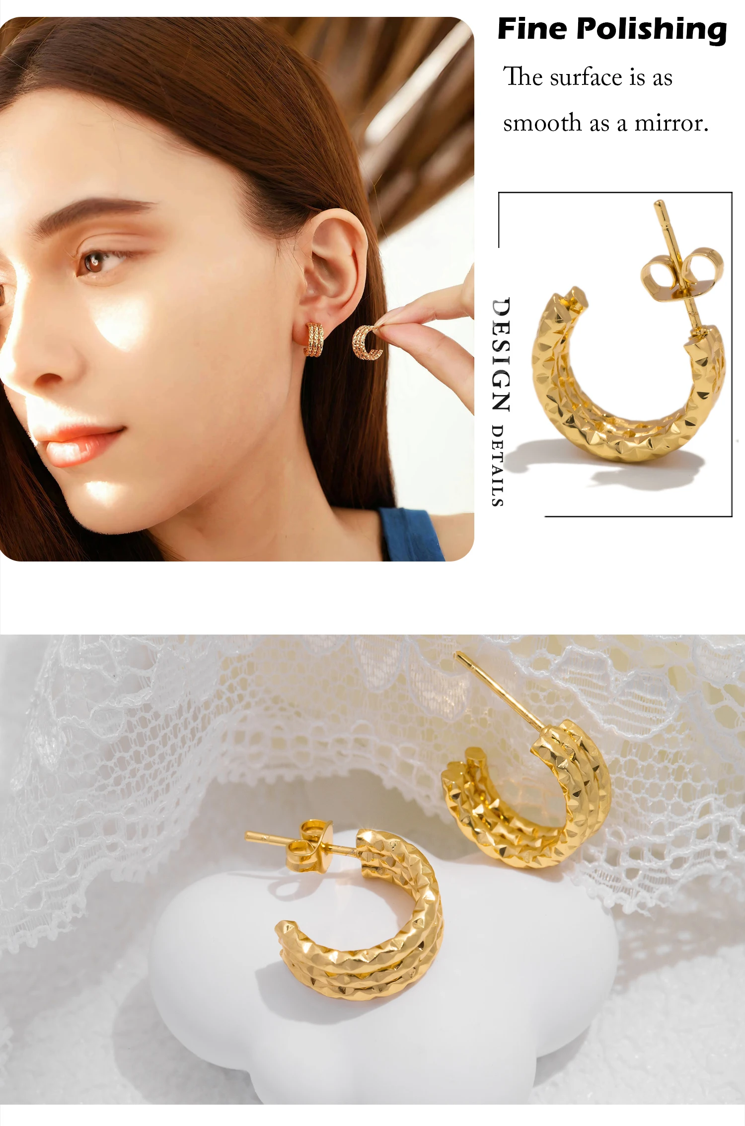 C-shaped Starry Earrings for Women, Exquisite Surface Wrinkle Treatment Technology, Stainless Steel Material Jewelry