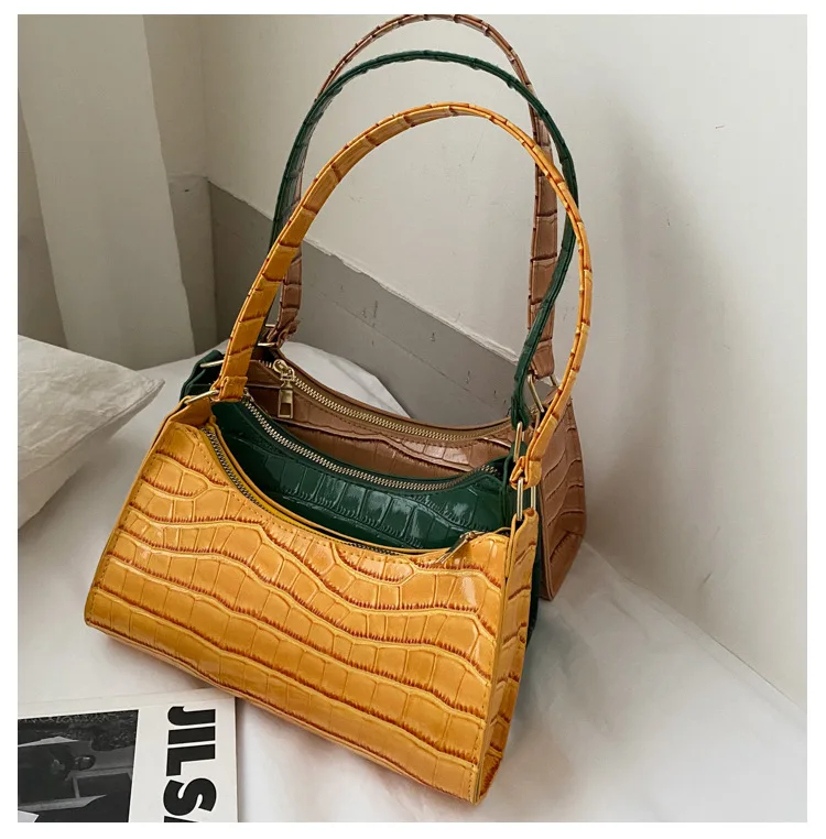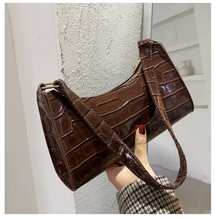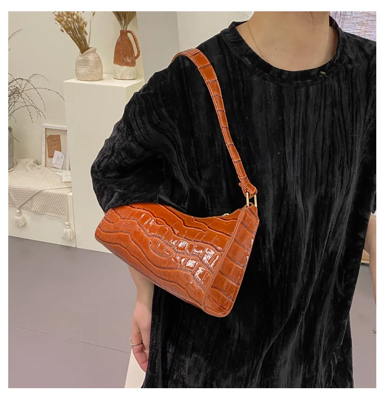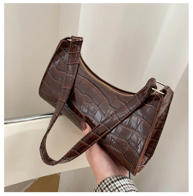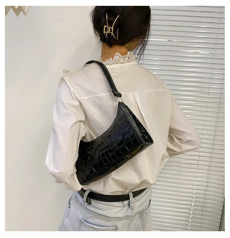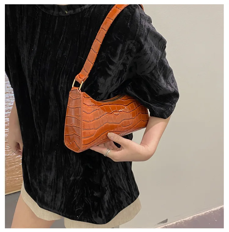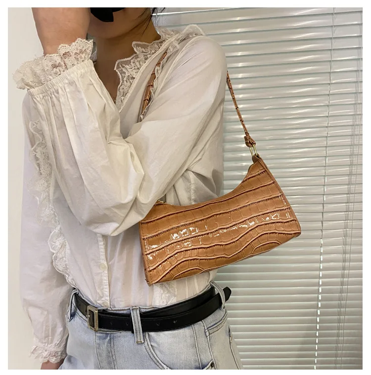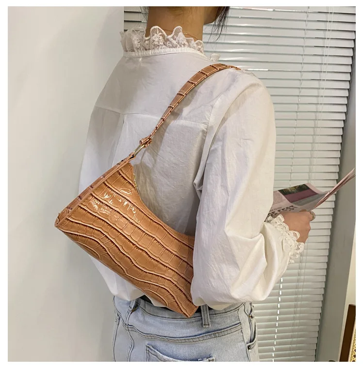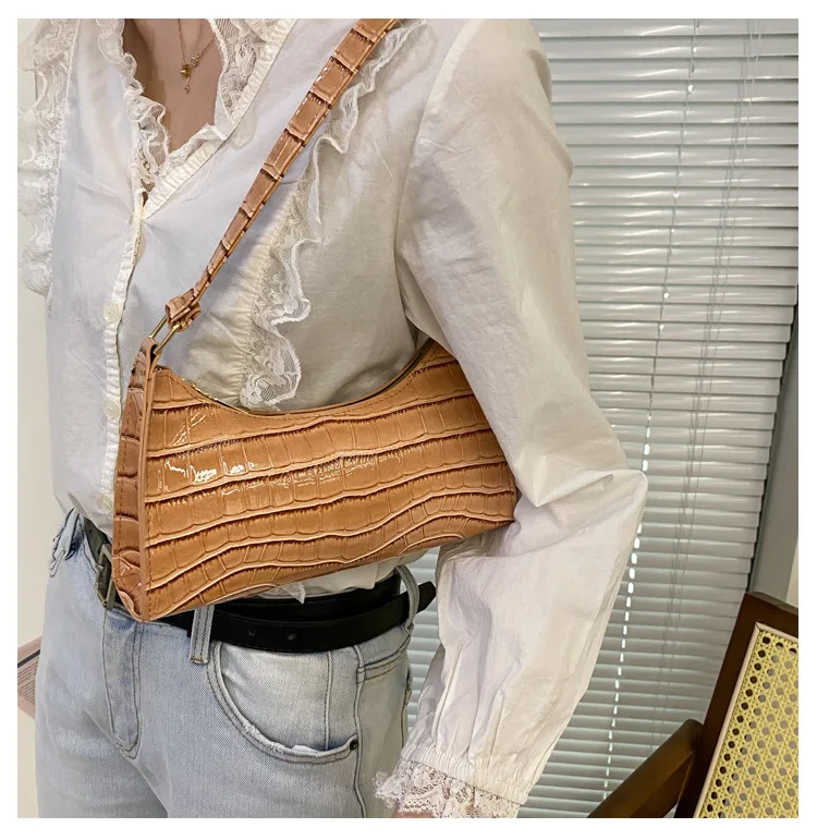 Fashion Alligator Pattern Women Handbag PU Leather Vintage Underarm Shoulder Bags Solid Female Daily Travel Totes