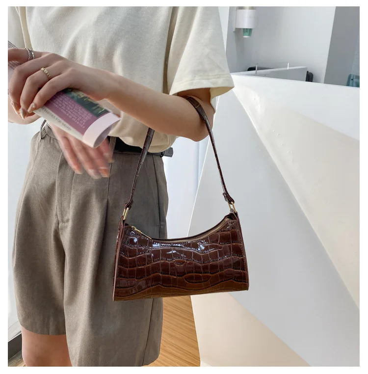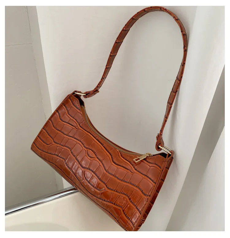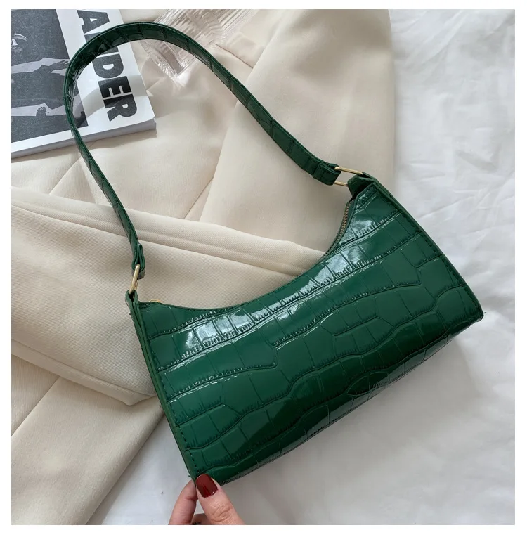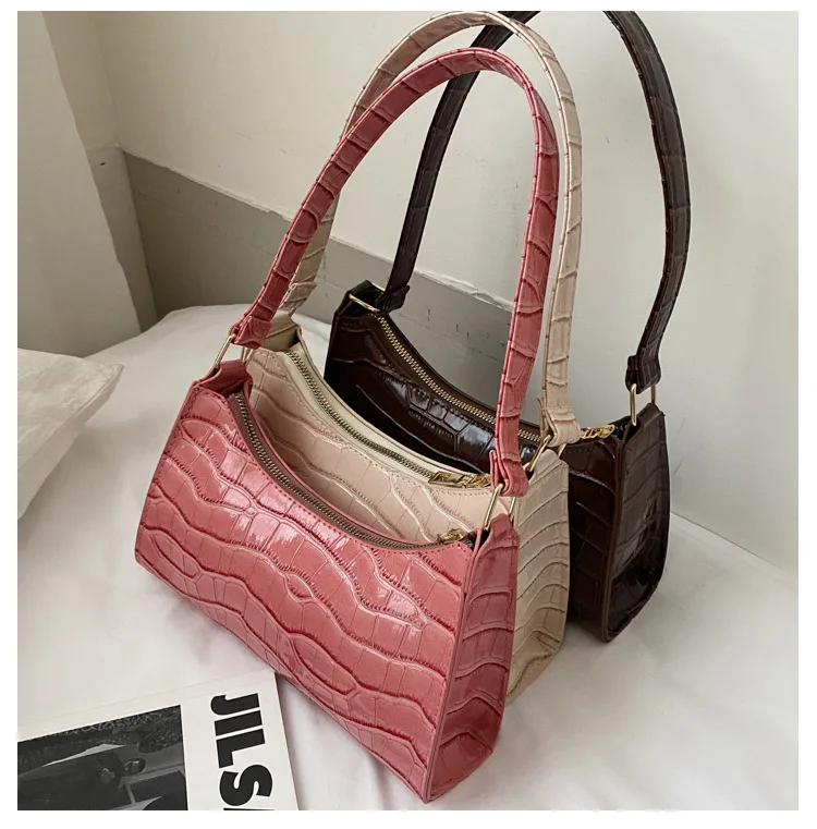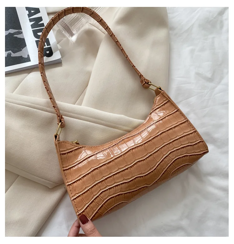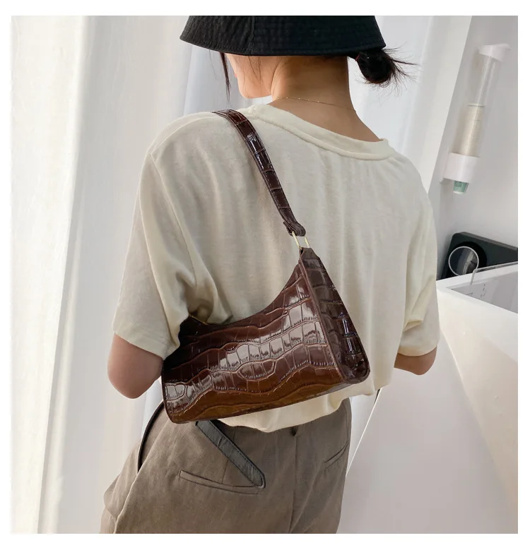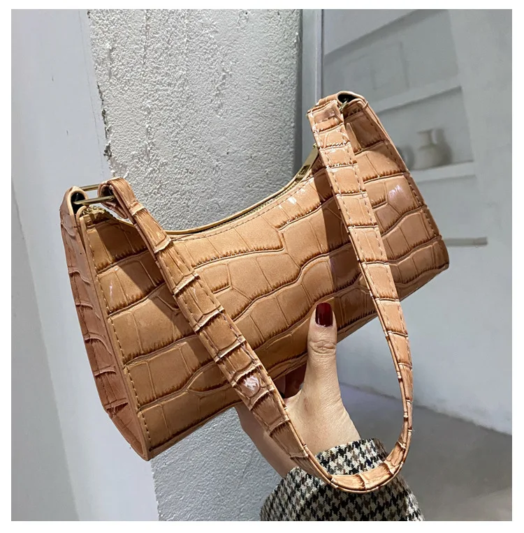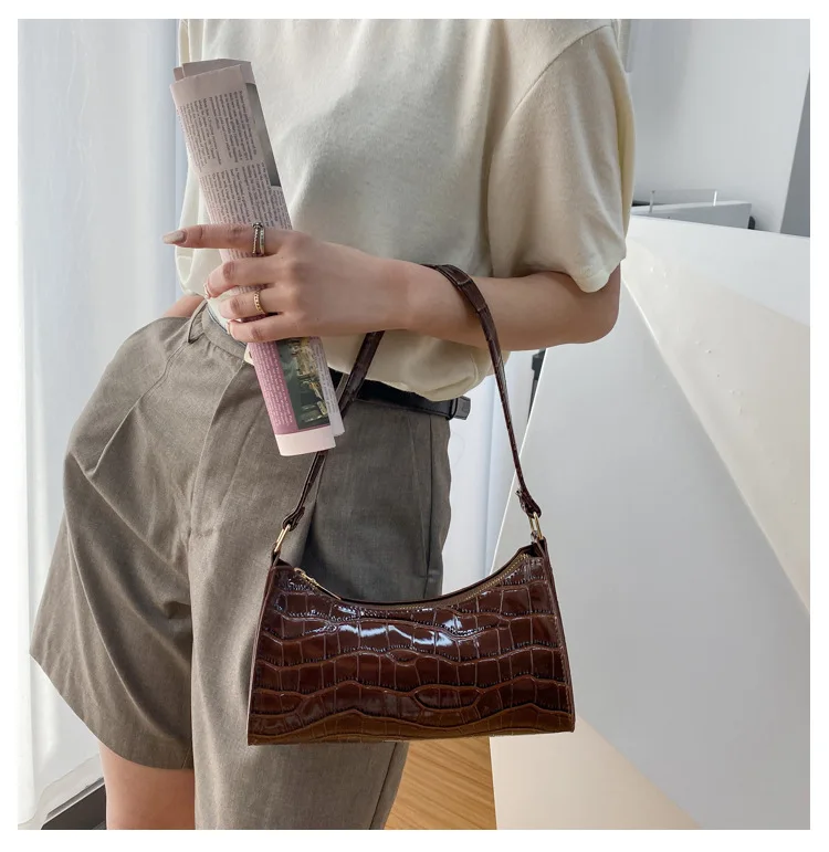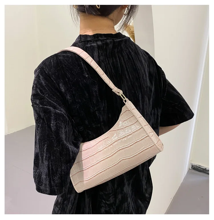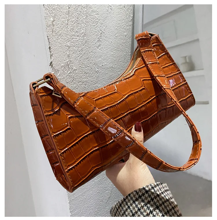 Fashion Alligator Pattern Women Handbag PU Leather Vintage Underarm Shoulder Bags Solid Female Daily Travel Totes