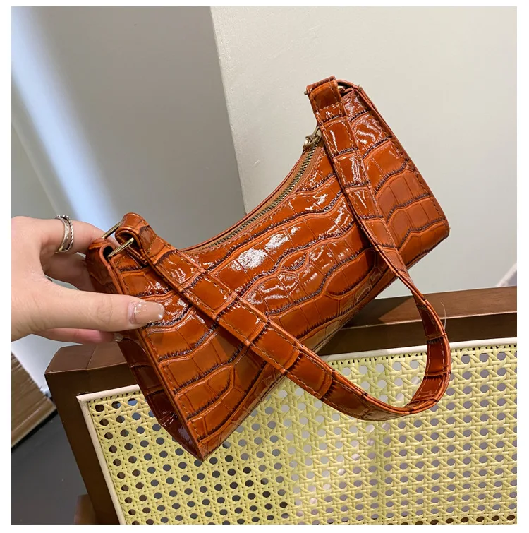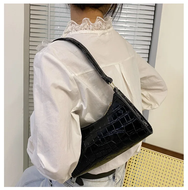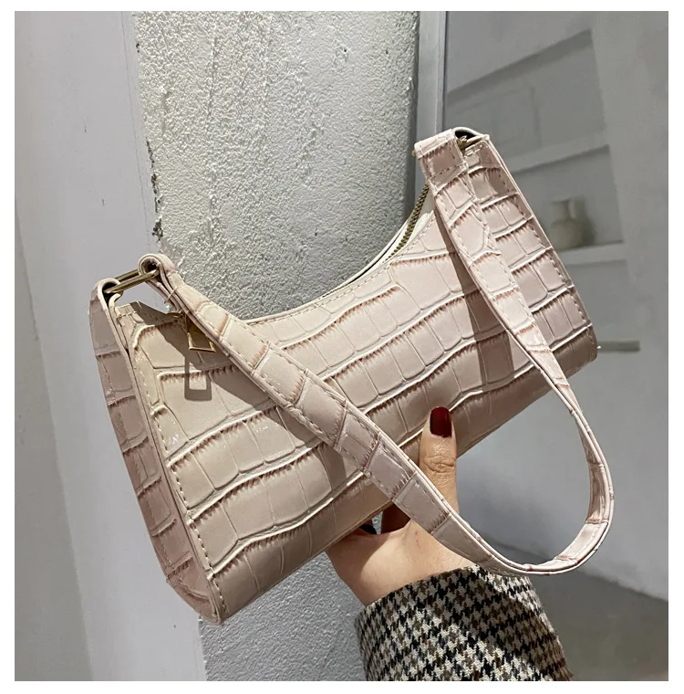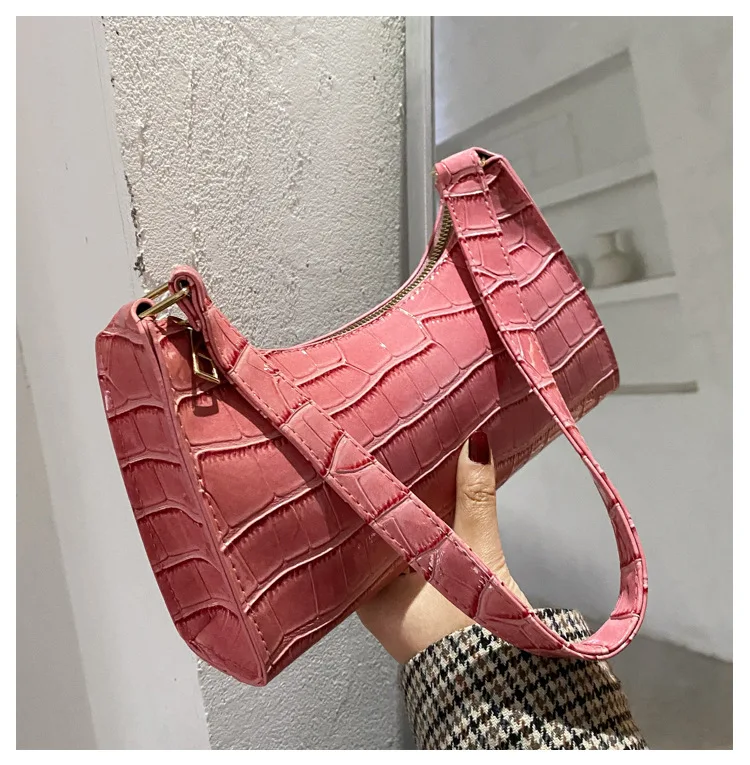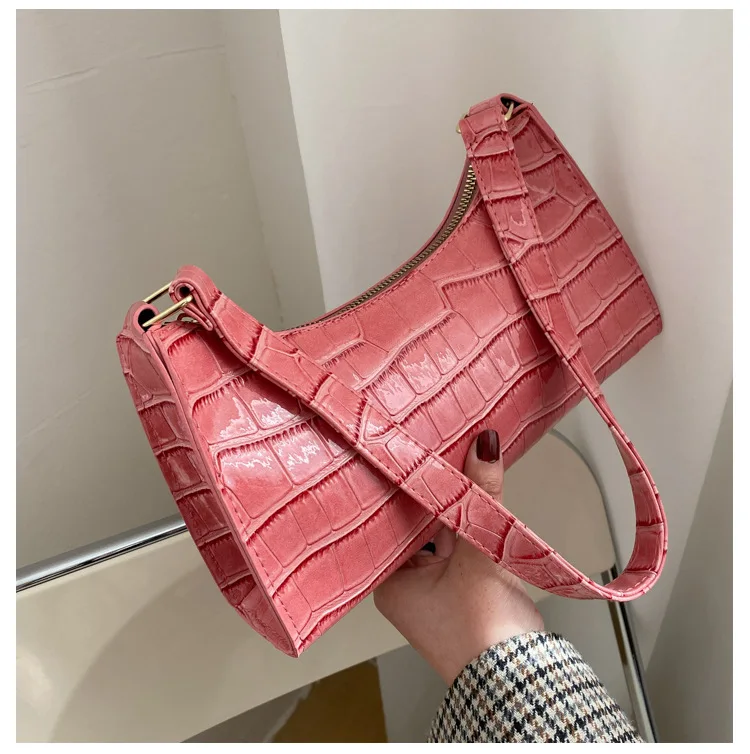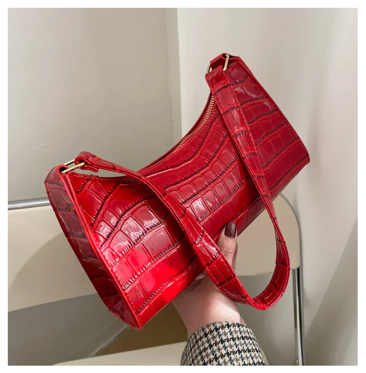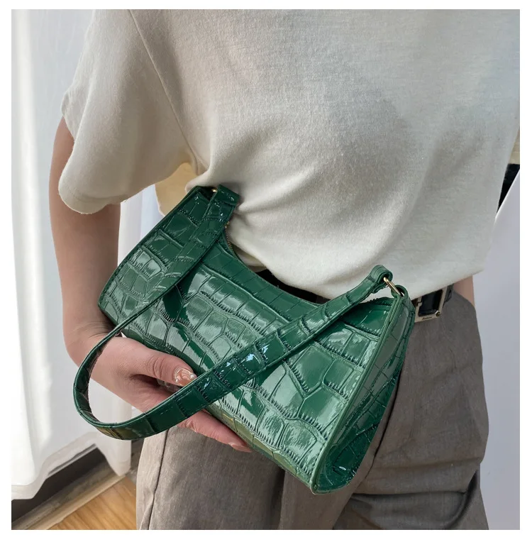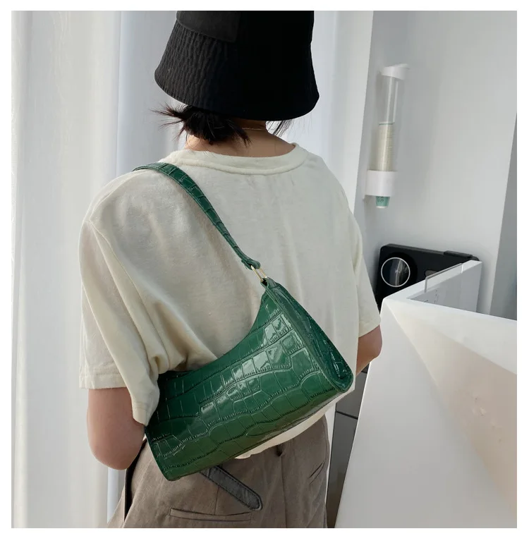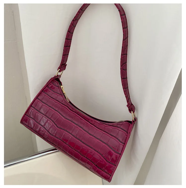 Fashion Alligator Pattern Women Handbag PU Leather Vintage Underarm Shoulder Bags Solid Female Daily Travel Totes