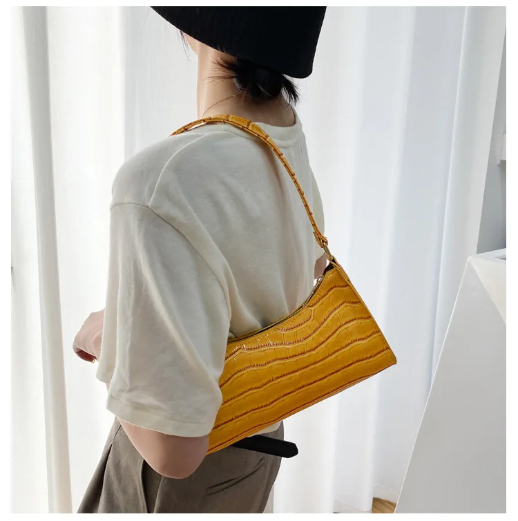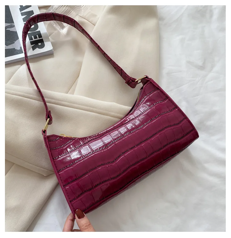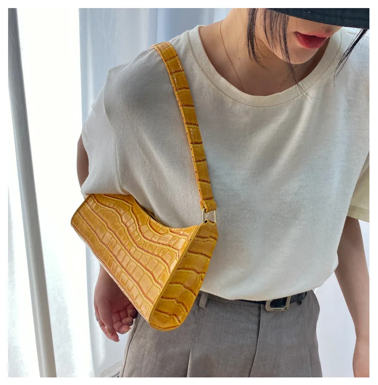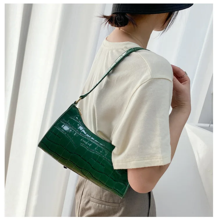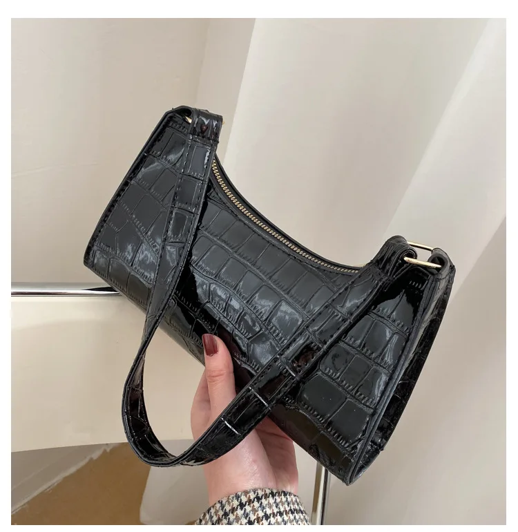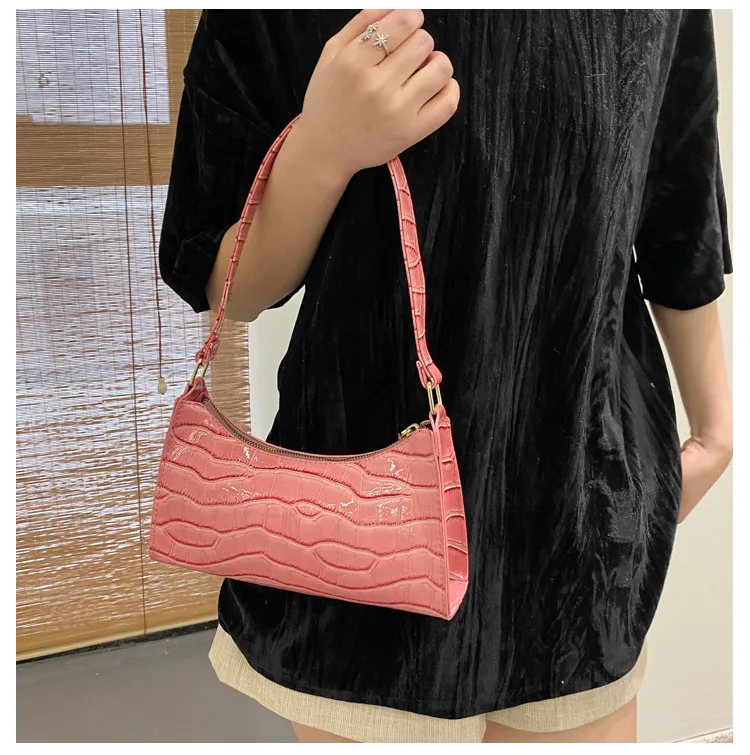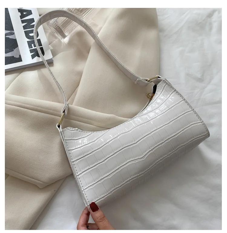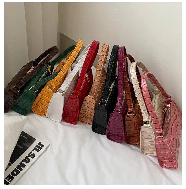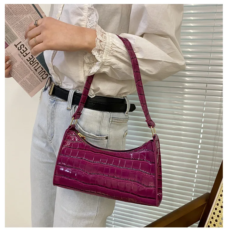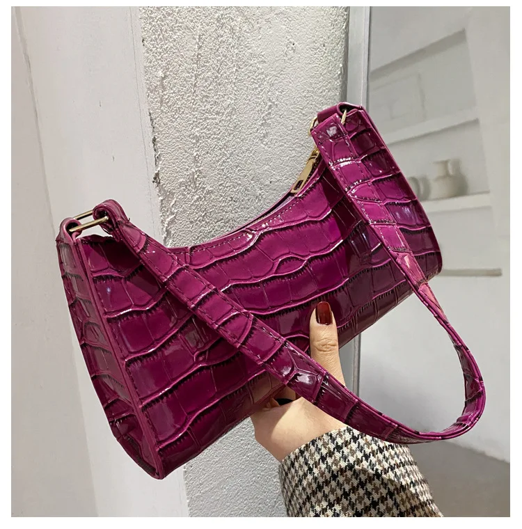 Fashion Alligator Pattern Women Handbag PU Leather Vintage Underarm Shoulder Bags Solid Female Daily Travel Totes
