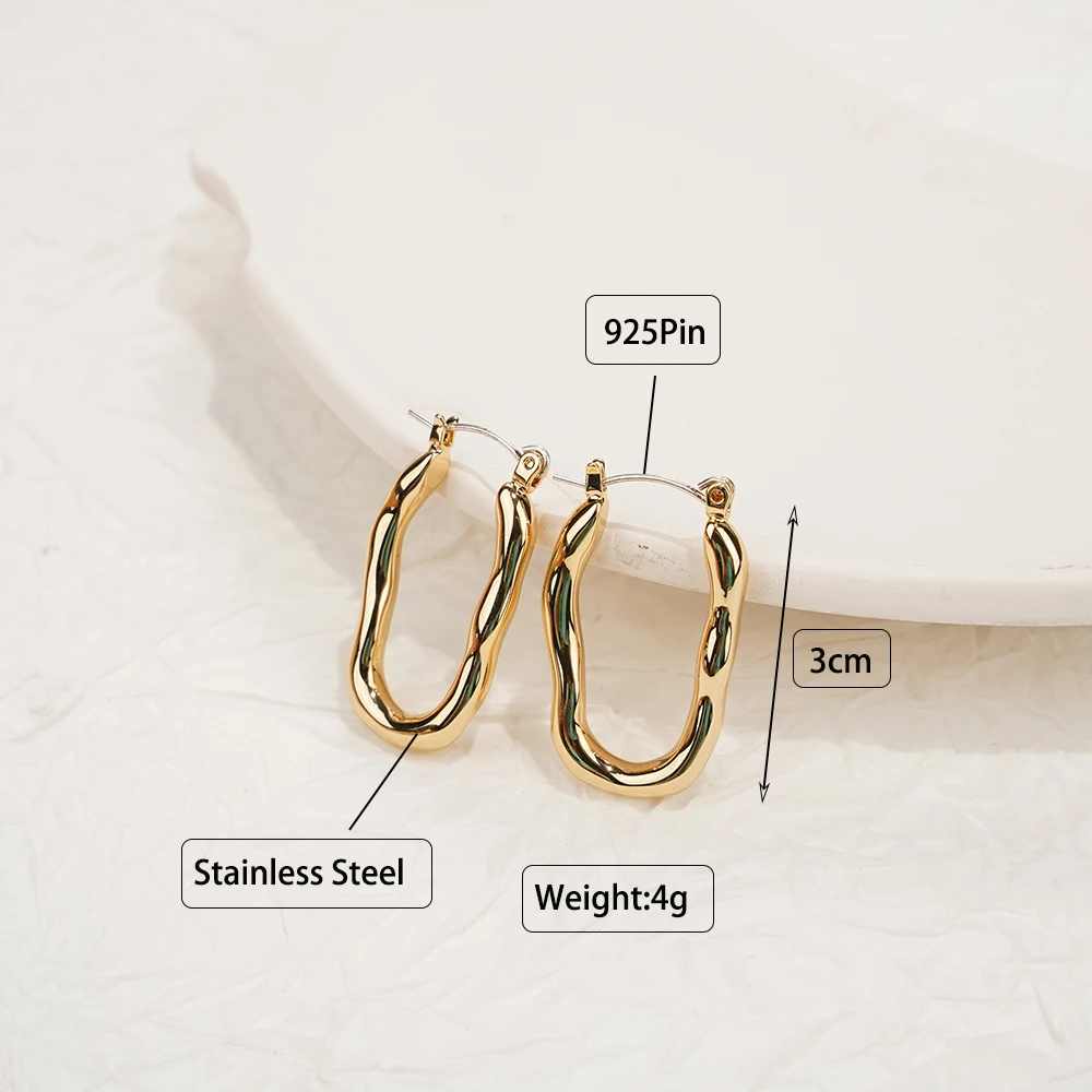 Fashion Pretty Gold Color Classic Stainless Steel Earrings for Women Large Earring Lady Wedding Jewelry Accessories