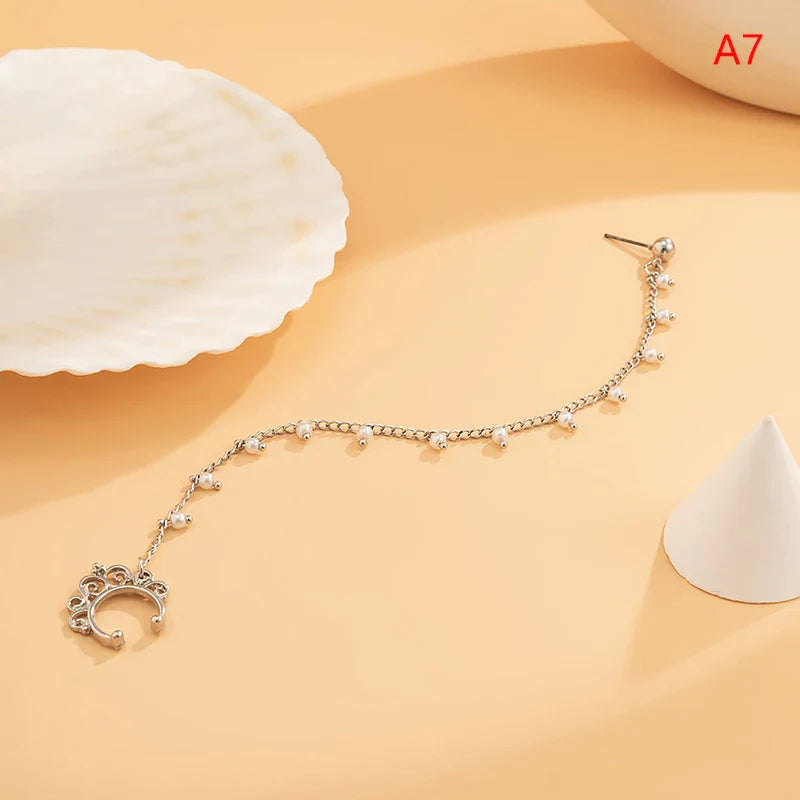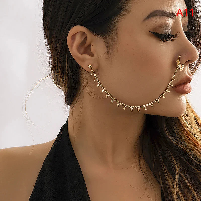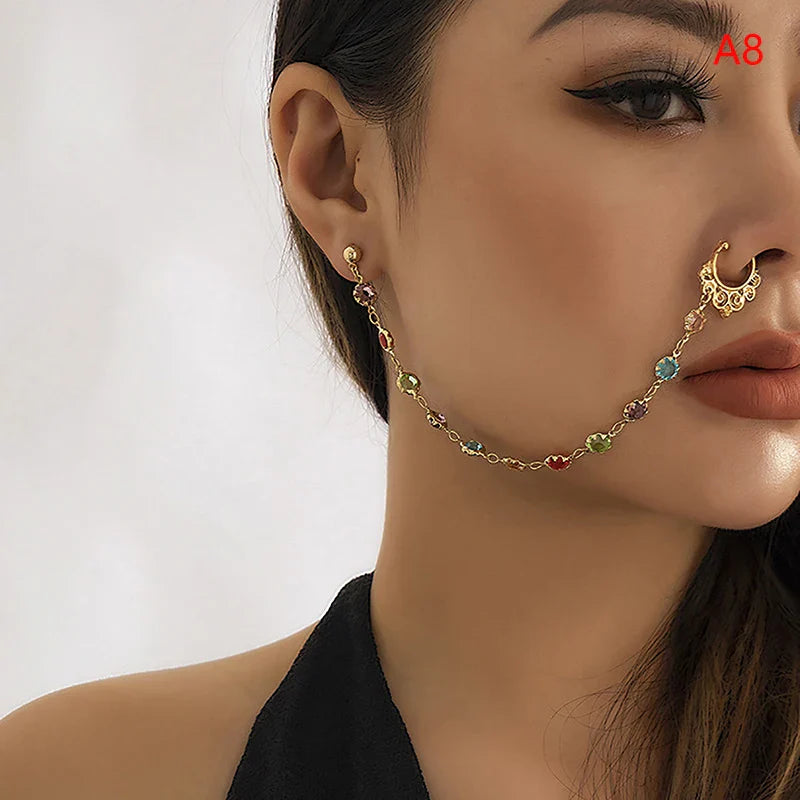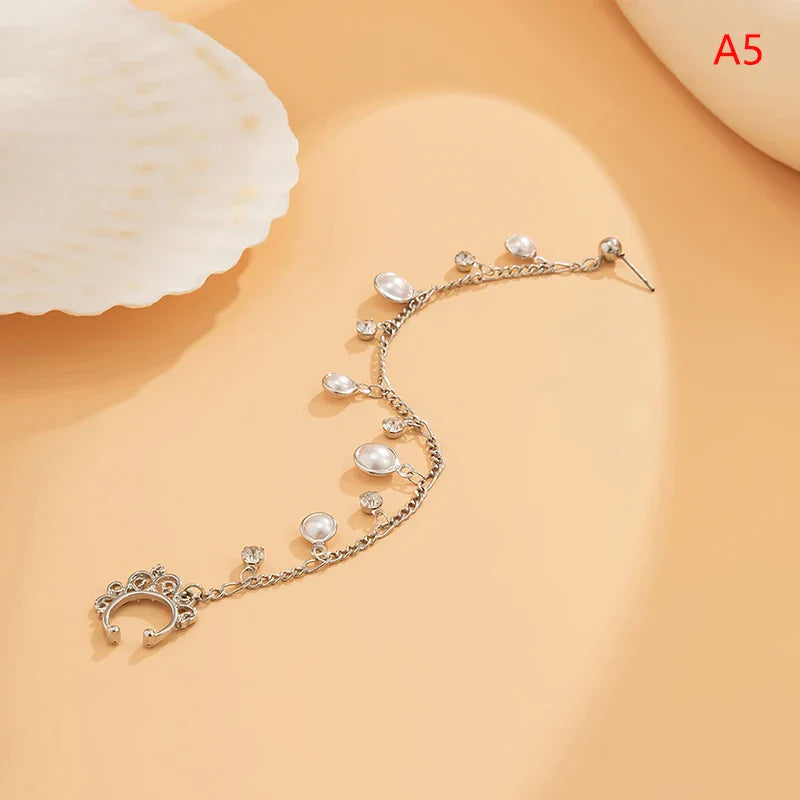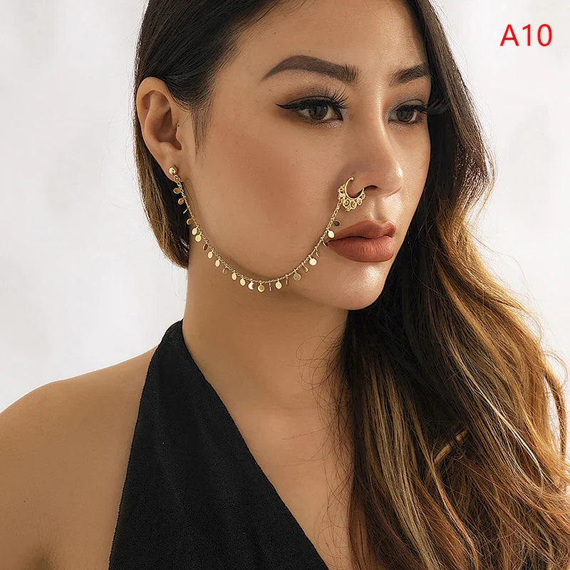 Indian Gold Color Pearl Butterfly Tassel Earrings Nose Clip Chain For Women Boho Nose Ring Non Pierceing Dangle Earring Jewelry