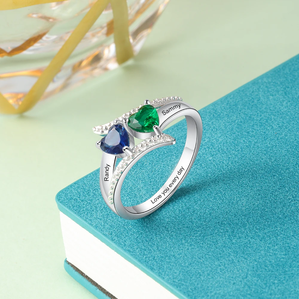 JewelOra Personalized Name Engrave Custom Ring with Heart Birthstone Silver Color Wedding Engagement Mother Rings Gift for Women