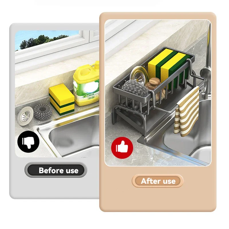 【VERSATILITY】This versatile holder can be used for a variety of items, including sponges, dish cloths, scrubbers, and even kitchen sink drain plugs. Its functionality is sure to impress.