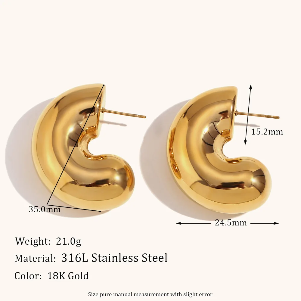 Miranda Metal Smooth High Quality Stainless Steel Geometric Chunky Unusual Earrings Fashion Charm Texture Stain Less Jewelry