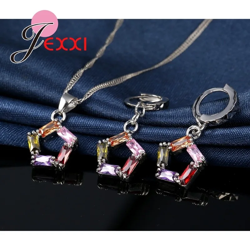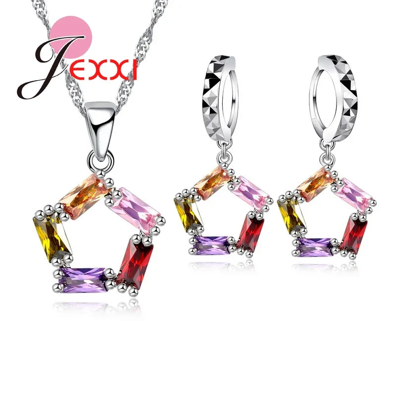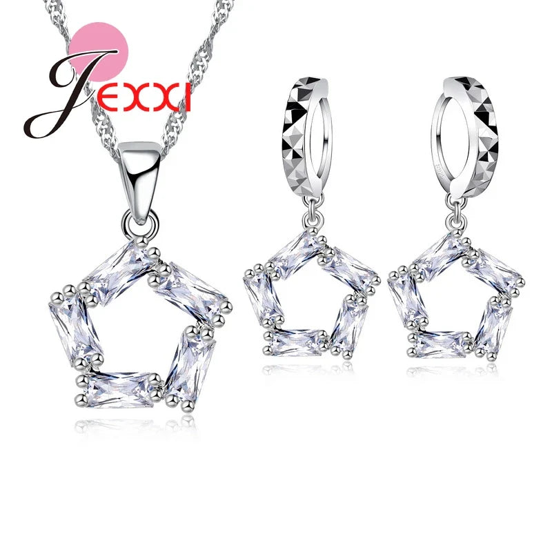New 2 Colors Necklace Pendant Earrings 925 Sterling Silver Color Color Jewelry Sets For Women Ladies Stars Shape Party Gifts
