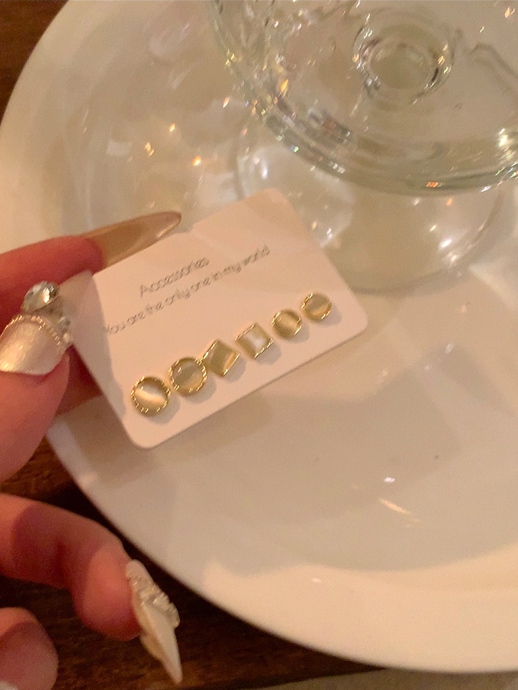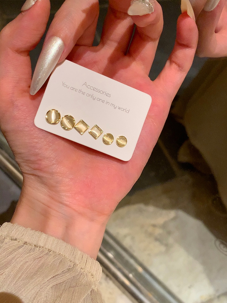 Niche Earrings Six-Piece Set Female Sleep No Need to Take off Opal