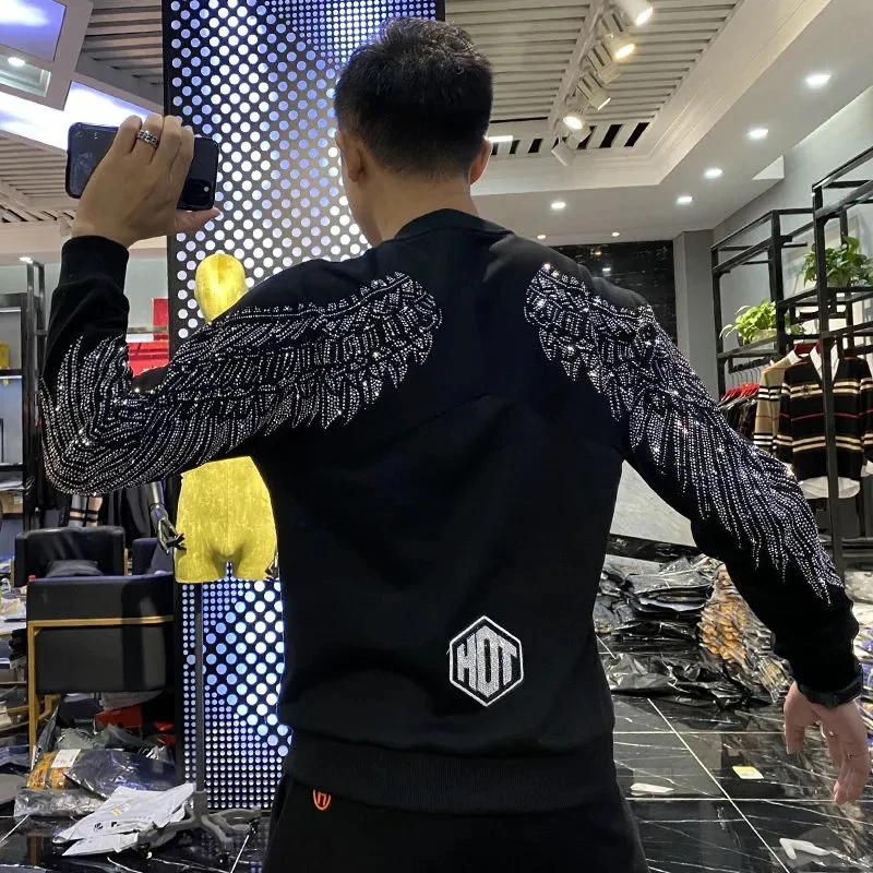Rhinestone Style Winter Trend Men Hoodie High Quality Pure Cotton Hoody Casual Fashion Pullover Hot-Selling Tops