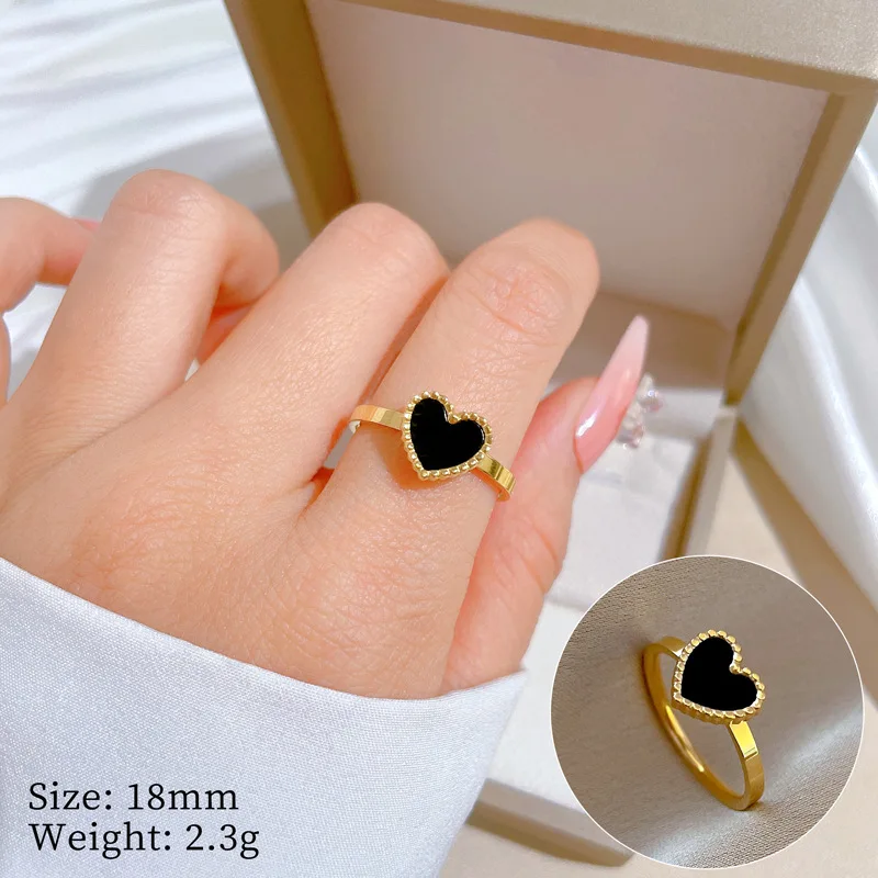 RONGXUANMEI New Trendy 2024 Gold Color Black Heart Stainless Steel Rings For Women Elegant Colorfast Love Party Finger Ring Gift