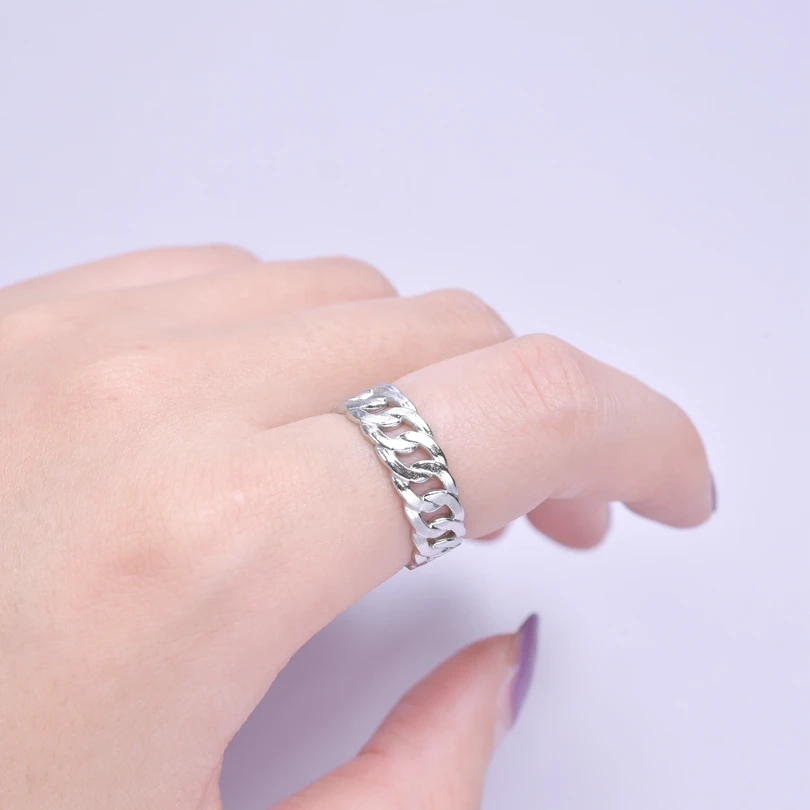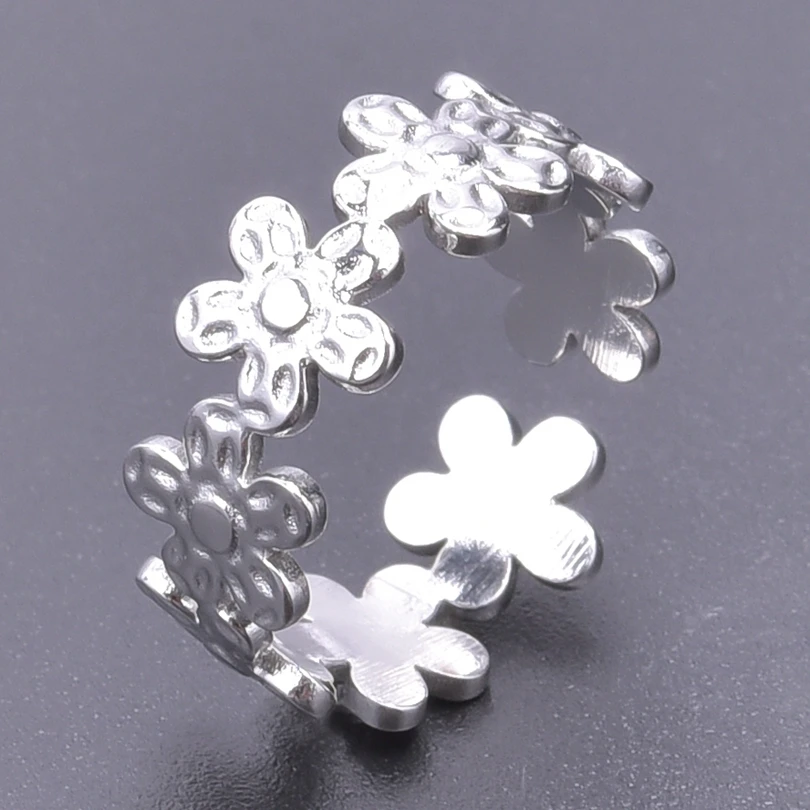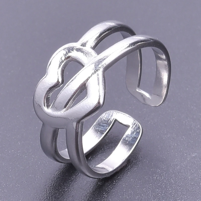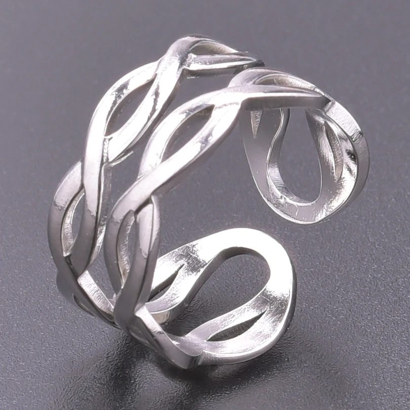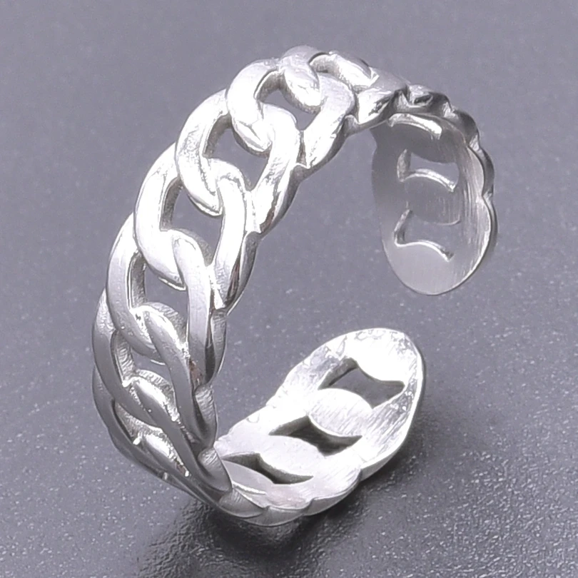 Silver Color Fashion Simple Ring for Women Girls Stainless Steel Jewelry Charm Resizable Open Finger Ring Minimalist Style