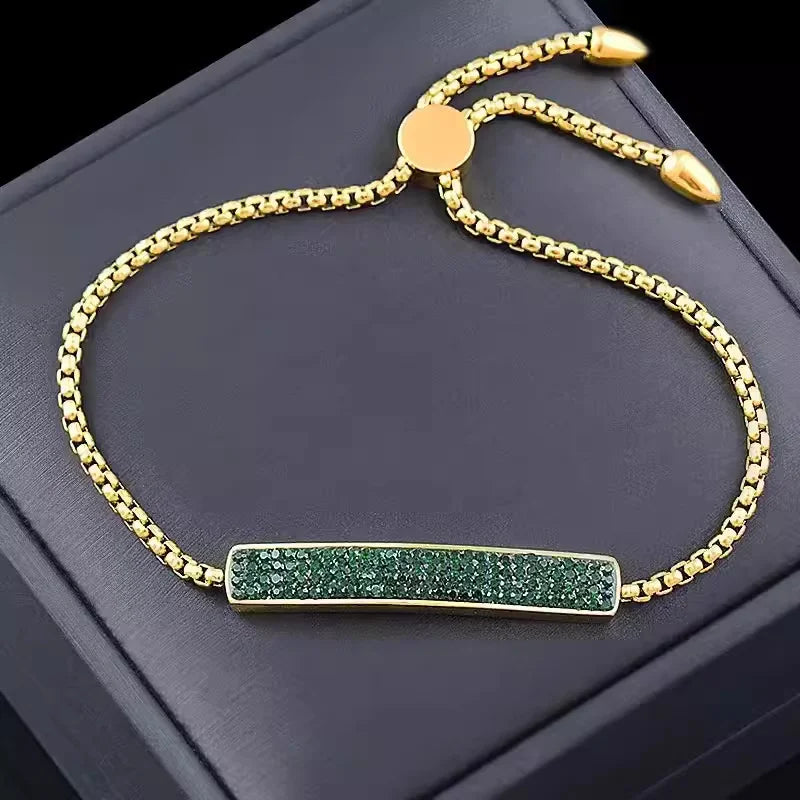 Whether attending formal occasions or wearing it on a daily basis, this titanium steel non fading green inlaid rhinestone pull-out bracelet can add a touch of bright color to you, showcasing your noble temperament and exquisite taste.