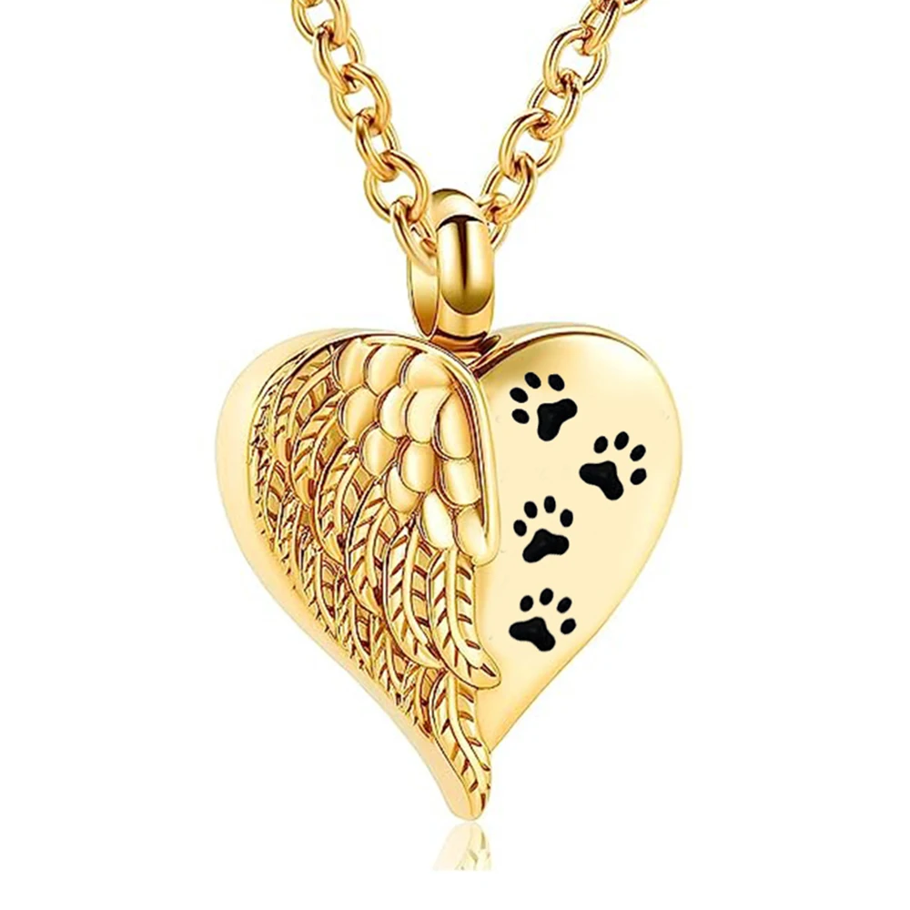 Stainless Steel Angel Wing Hold Heart Cremation Urn Necklace Keepsake Memroial Jewelry For Ash