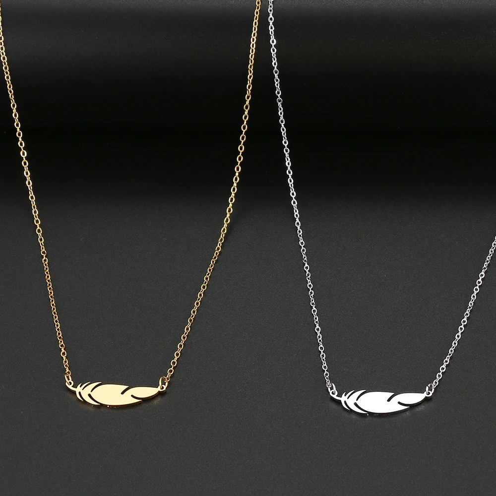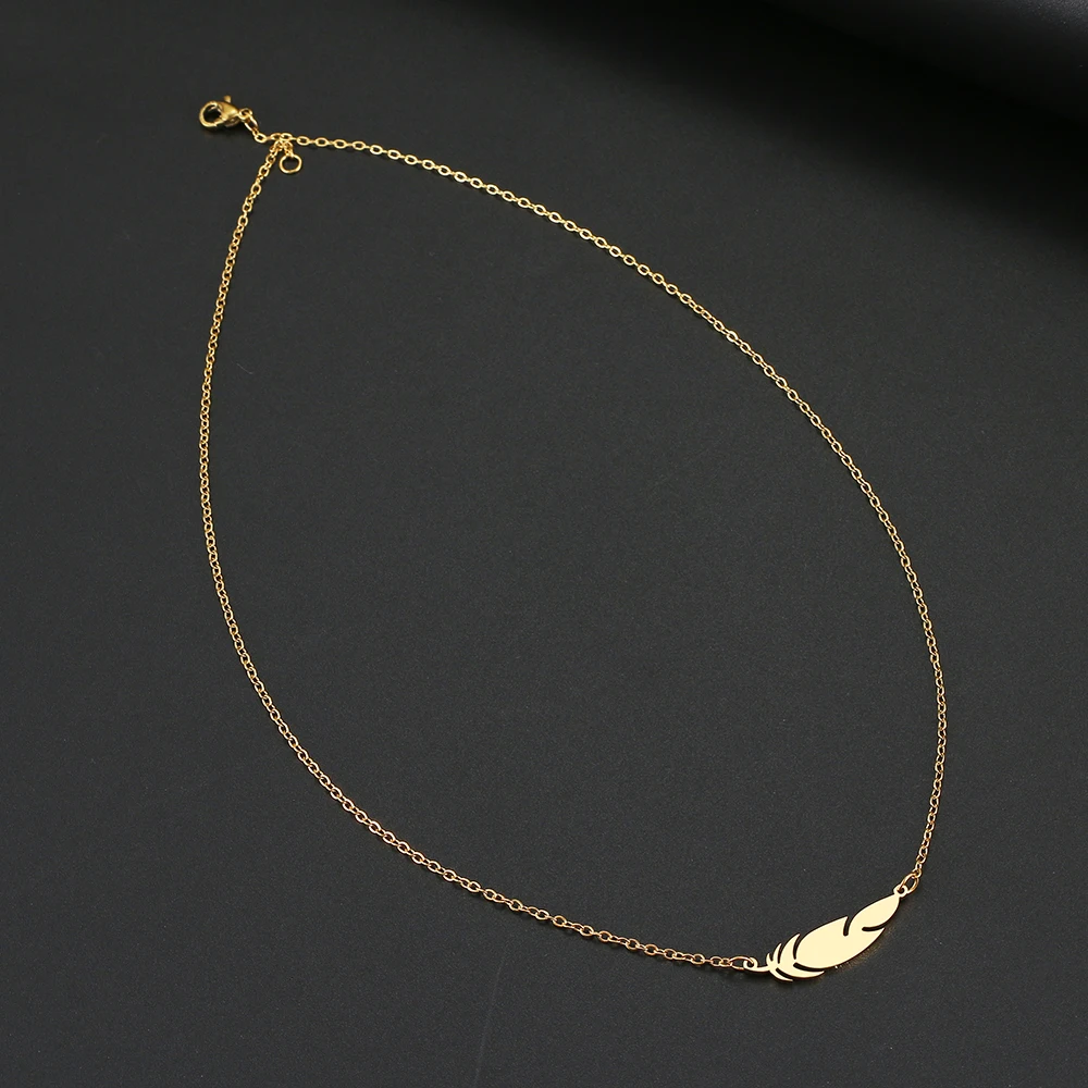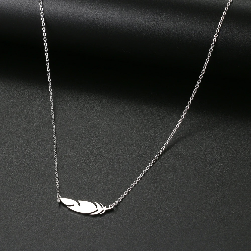 Stainless Steel Necklaces Simple Feather Charm Pendant Collar Chain Fashion Necklace For Women Men Jewelry Friends Best Gifts