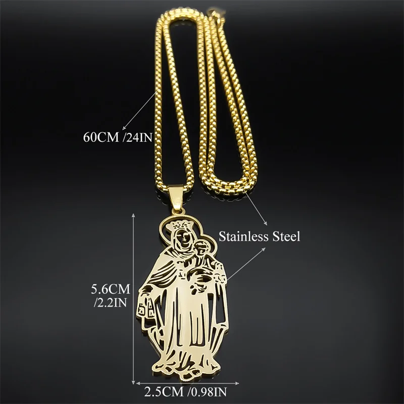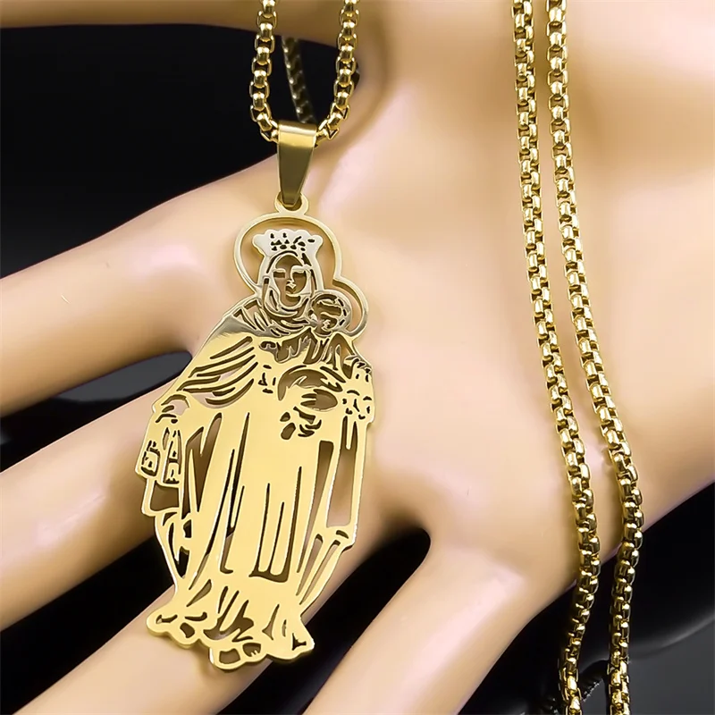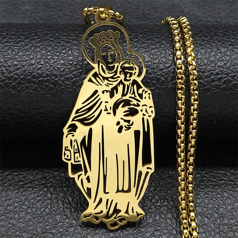 The Virgin Mary of Christian Jesus Necklace for Women Men Stainless Steel Gold Color Catholicism Sacred Jewlery joyas