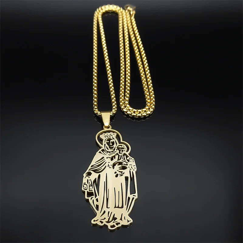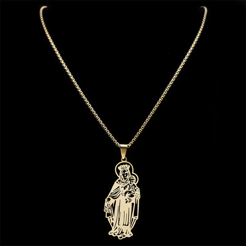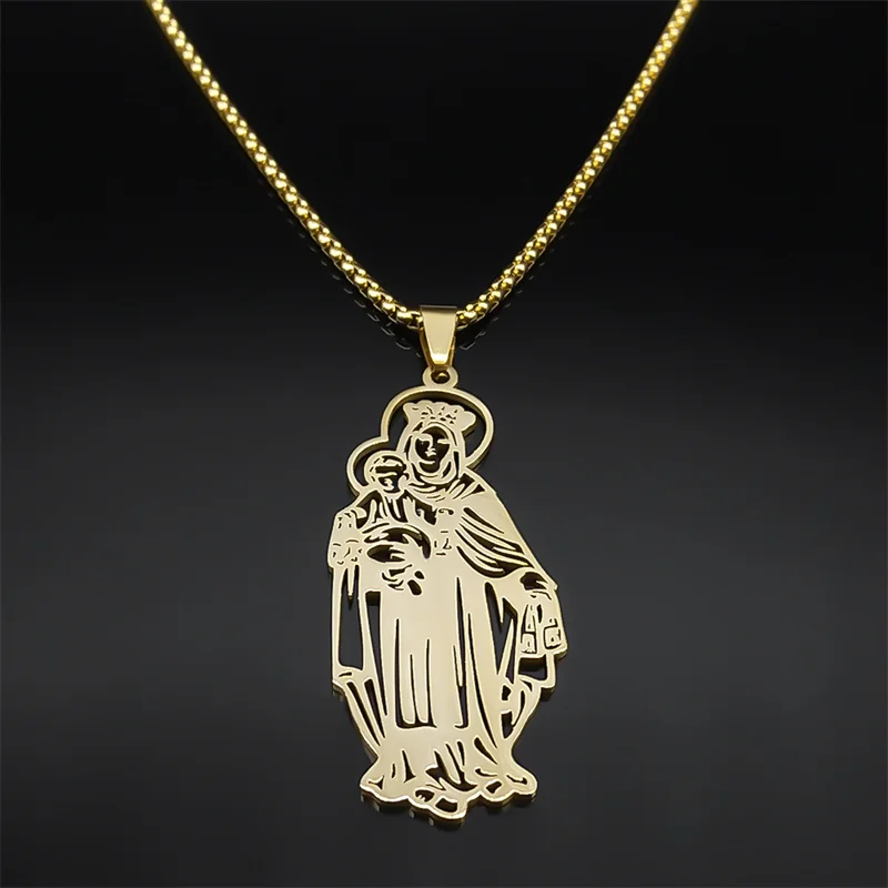 The Virgin Mary of Christian Jesus Necklace for Women Men Stainless Steel Gold Color Catholicism Sacred Jewlery joyas NZZZ508S01
