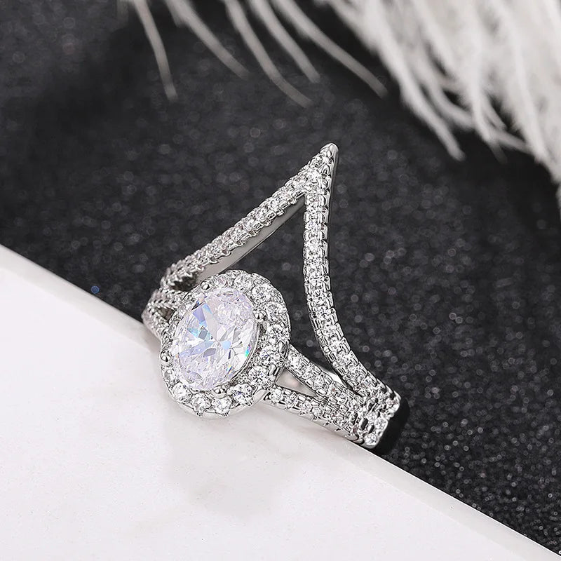 Trendy Luxury Creative V Shape Design New Women Rings Dazzling Silver Color Zircon Female Accessories Engagement Party Jewelry